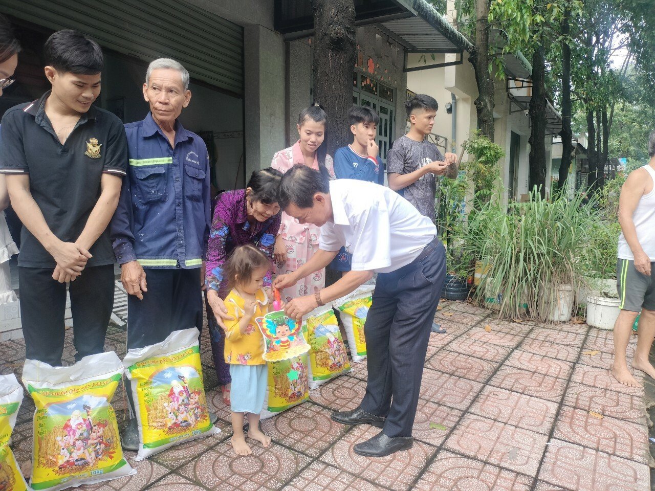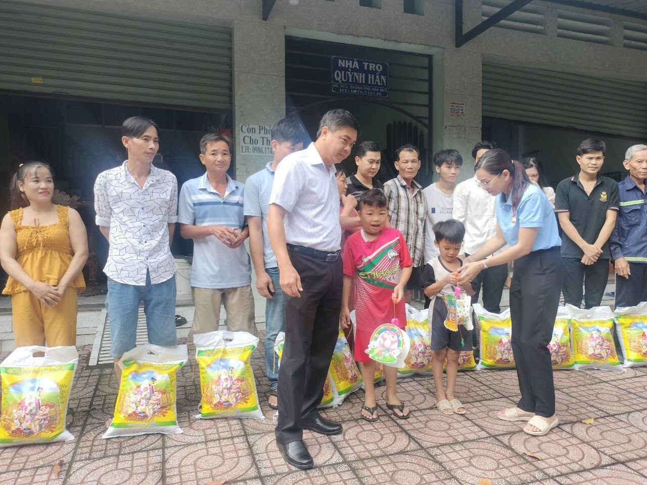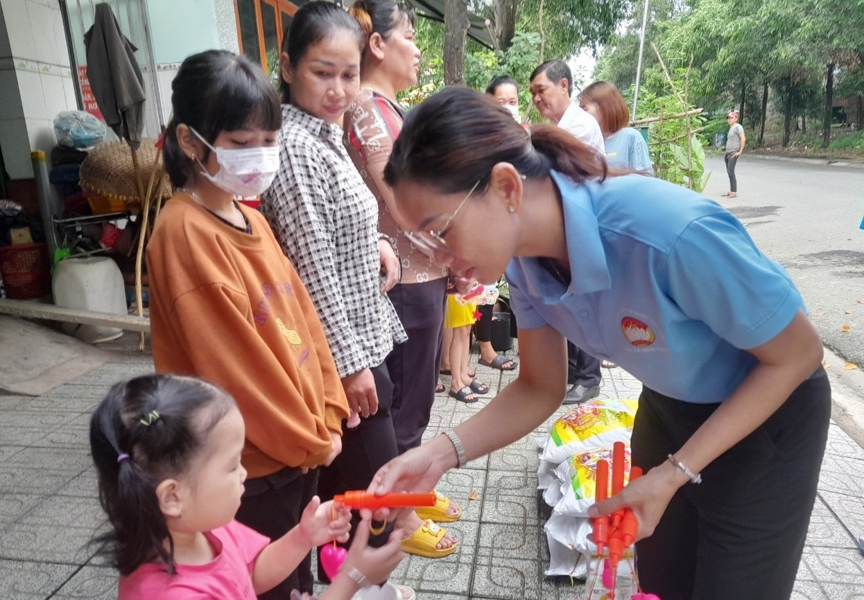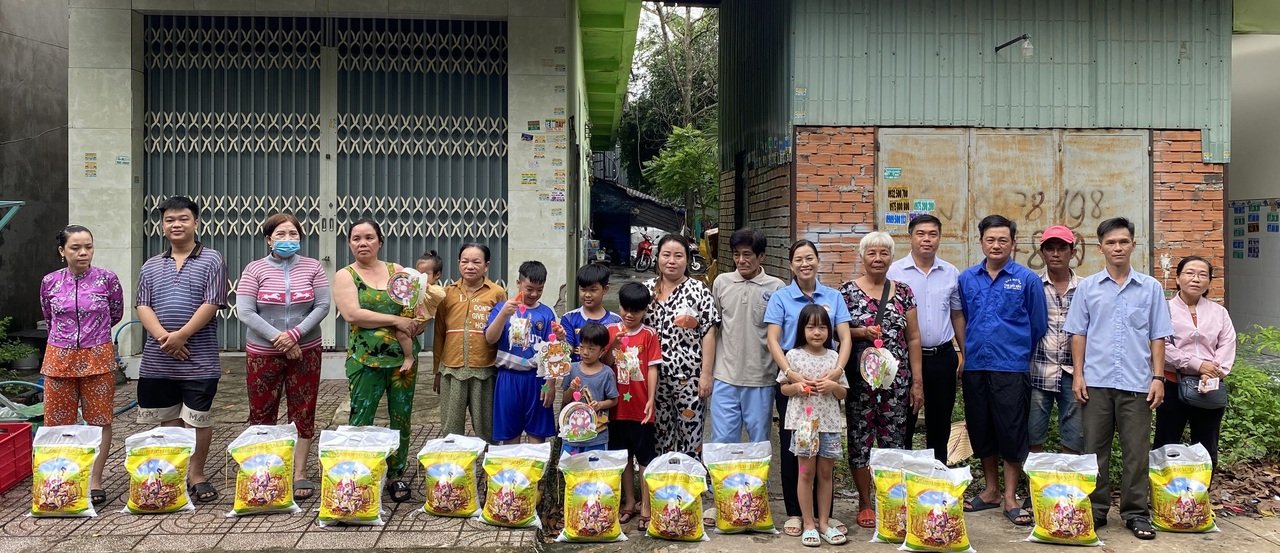 Theo đó, MTTQ phường phối hợp Ban điều hành khu phố 7 trao tặng 2 tấn gạo và lồng đèn cho các em thiếu nhi ở 200 phòng trọ thuộc khu phố 7, phường Chánh Phú Hòa, với số tiền 40 triệu đồng.
