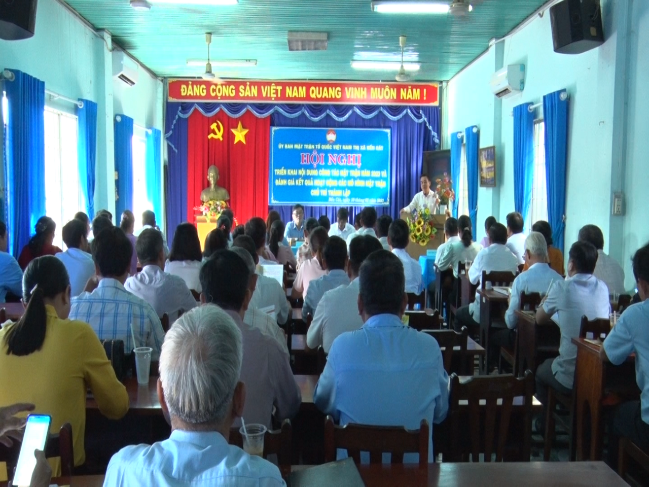 Theo đó, MTTQ từ thị xã đến các xã phường, khu, ấp đẩy mạnh thực hiện Cuộc vận động “Toàn dân đoàn kết xây dựng nông thôn mới, đô thị văn minh”, “Người Việt Nam ưu tiên dùng hàng Việt Nam”, phong trào “Đoàn kết, sáng tạo” gắn với triển khai có hiệu quả các nhiệm vụ được giao trong các Chương trình mục tiêu quốc gia về xây dựng nông thôn mới và giảm nghèo bền vững, giai đoạn 2021-2025. Tiếp tục đổi mới, nâng cao chất lượng hoạt động Quỹ “Vì người nghèo”, trong đó chú trọng thực hiện tốt công tác quản lý quỹ, đảm bảo đúng quy định của pháp luật; tổ chức tốt ngày hội Đại đoàn kết dân tộc và phối hợp tổ chức ngày hội Quốc phòng toàn dân, ngày hội Toàn dân bảo vệ an ninh Tổ quốc. Phối hợp với các tổ chức thành viên triển khai thực hiện tốt Quyết định số 217-QĐ/TW về việc ban hành Quy chế giám sát và phản biện xã hội của Mặt trận Tổ quốc Việt Nam và các đoàn thể chính trị - xã hội; Quyết định số 218-QĐ/TW về ban hành quy định về việc Mặt trận Tổ quốc Việt Nam, các đoàn thể chính trị - xã hội và nhân dân tham gia góp ý xây dựng đảng, xây dựng chính quyền…