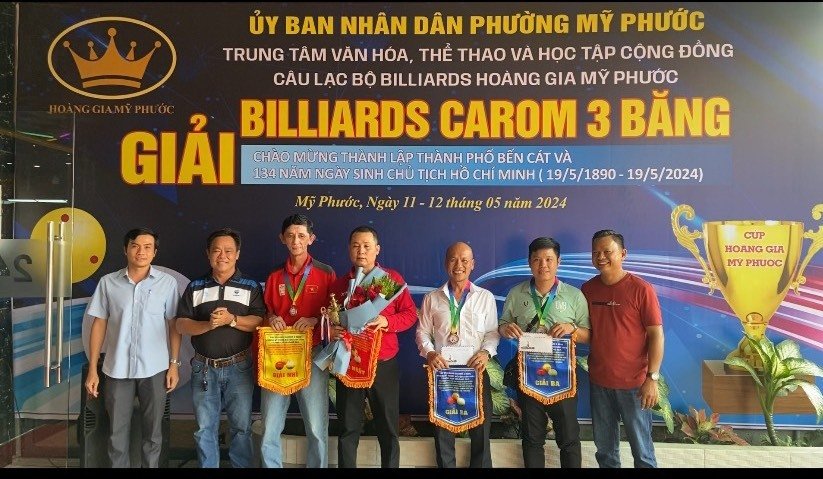 Hưởng ứng phong trào “Toàn dân rèn luyện thân thể theo gương Bác Hồ vĩ đại, đồng thời phát triển bộ môn bida trong quần chúng nhân dân, trong 02 ngày 11 và 12/5, Trung tâm Văn hóa, Thể thao và học tập cộng đồng phường Mỹ Phước tổ chức giải Billiards Caroom 3 băng mở rộng tranh cúp Hoàng Gia. Đây là giải đấu chào mừng thành lập thành phố Bến Cát và kỷ niệm 134 năm ngày sinh Chủ tịch Hồ Chí Minh (19/5/1890 – 19/5/2024).