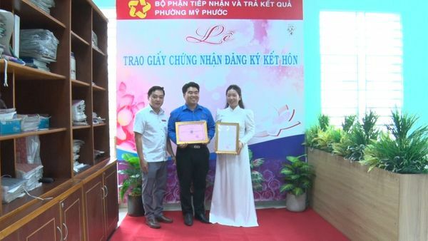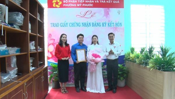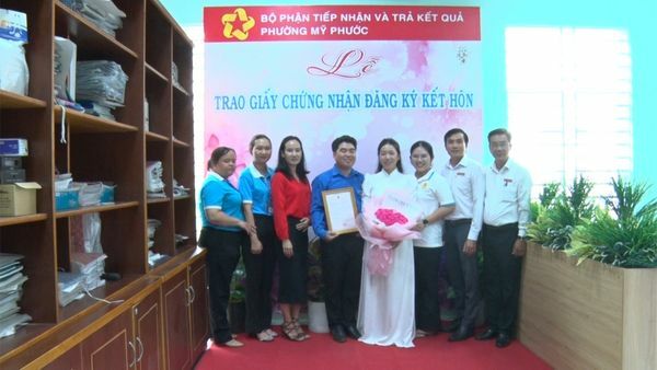 Trong ngày đầu thực hiện mô hình, phường Mỹ Phước đã tiến hành trao giấy chứng nhận kết hôn cho 01 cặp đôi, đồng thời tặng hoa và gửi thư chúc mừng đến cặp đôi.