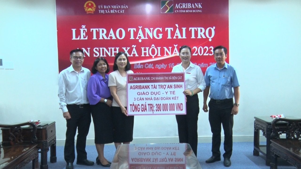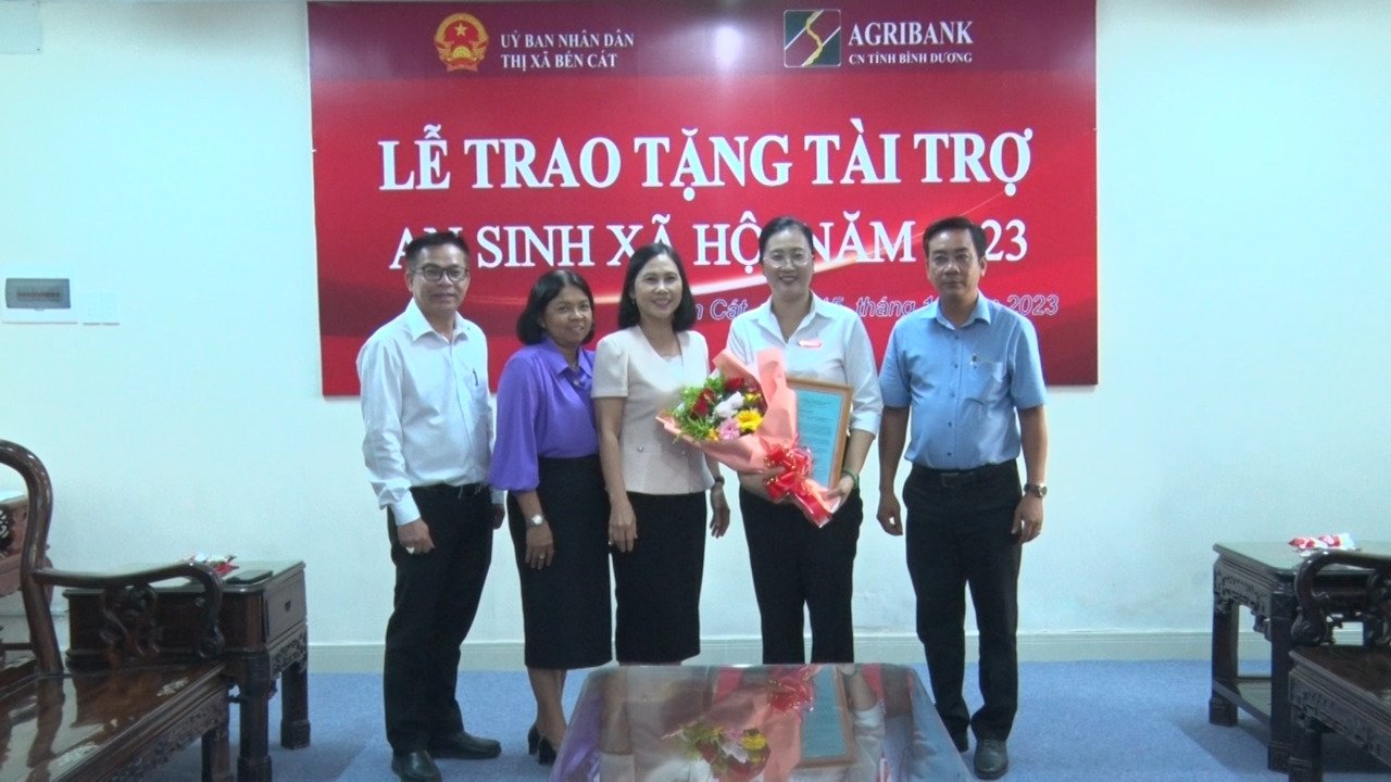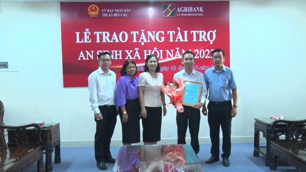 Chiều ngày 15/12, tại UBND thị xã Bến Cát, Agribank - Chi nhánh Bến Cát và Agribank – Chi nhánh Sở Sao tổ chức trao tặng tài trợ an sinh xã hội. Đến dự có bà Trần Thị Thảo – Phó Chủ tịch UBND thị xã, đại diện lãnh đạo Agribank - Chi nhánh Bến Cát và Agribank – Chi nhánh Sở Sao, Ủy ban MTTQ Việt Nam thị xã, Phòng Y tế, Phòng Giáo dục và Đào tạo thị xã.