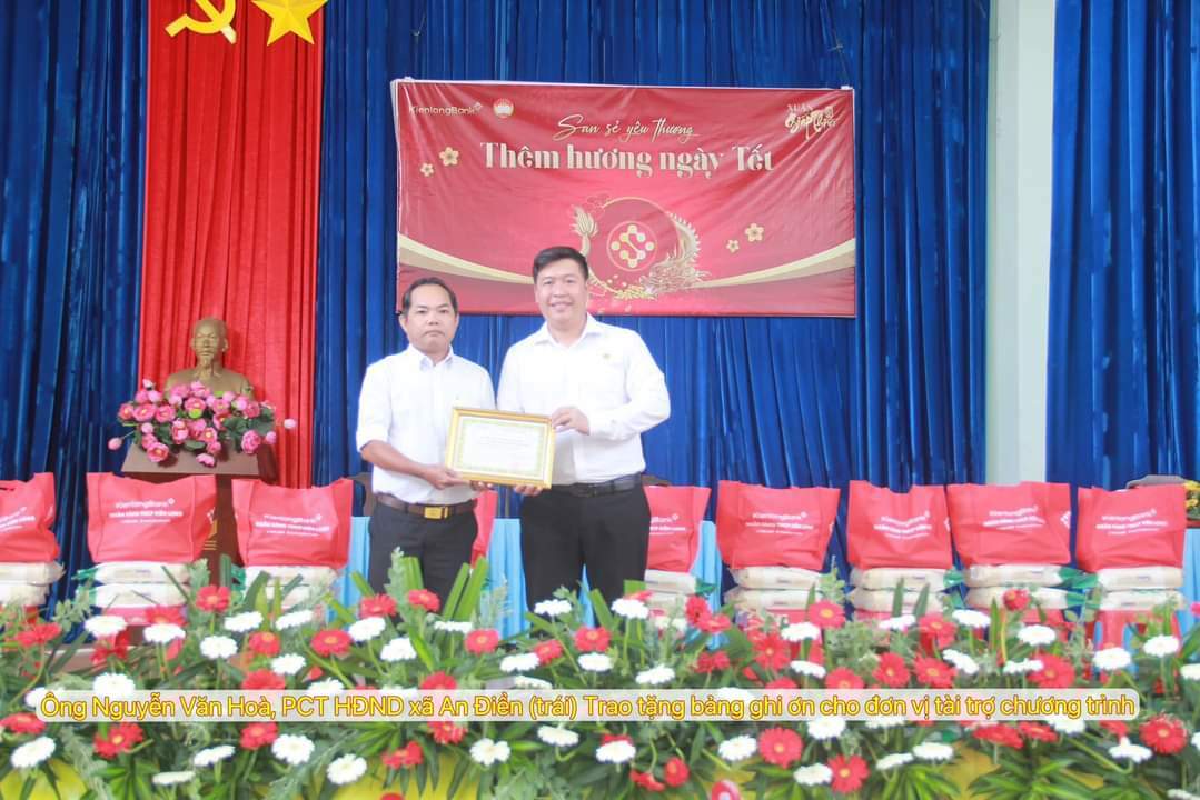 Ngày 24/01, tại UBND xã An Điền, Ngân hàng Kiên Long tổ chức chương trình “San sẻ yêu thương” thêm hương ngày tết.