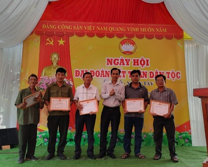 Dịp này, UBND xã An Tây biểu dương, khen thưởng 15 hộ gia đình tiêu biểu đạt gia đình văn hóa 03 năm liền (2021-2023) và trao tặng 32 phần quà cho gia đình có hoàn cảnh khó khăn trên địa bàn ấp Lồ Ồ.