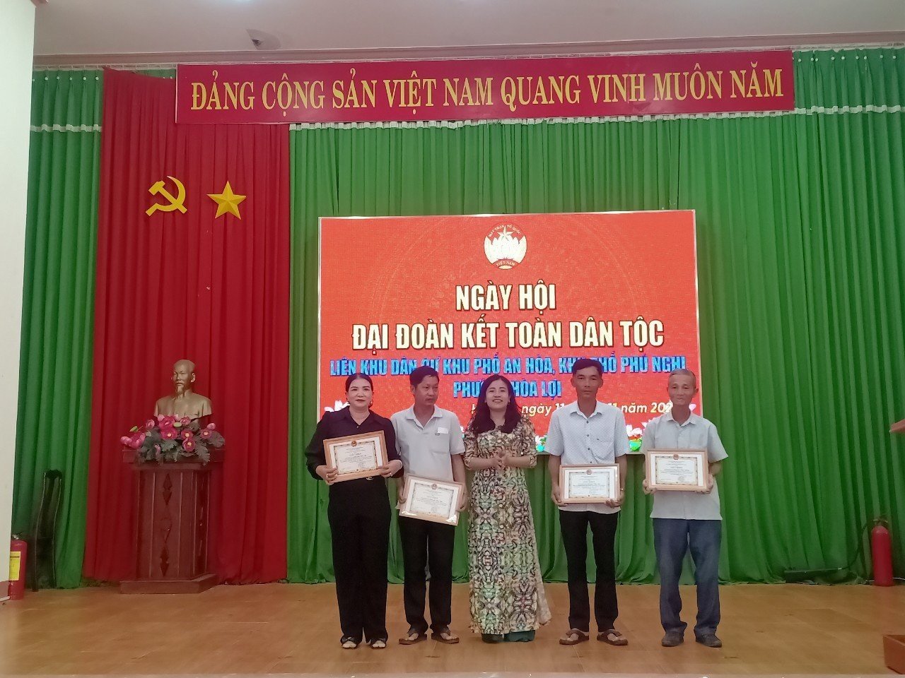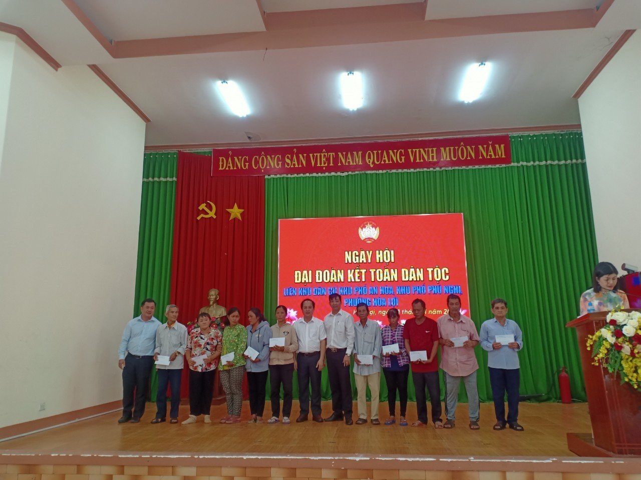 Dịp này, UBND phường đã khen thưởng hộ gia đình tiêu biểu đạt gia đình văn hóa 3 năm liền 2021 – 2023 và các khu nhà trọ văn hóa tiêu biểu; lãnh đạo thị xã tặng 1 căn nhà đại đoàn kết trị giá 100 triệu đồng; lãnh đạo phường, khu phố tặng nhiều phần quà ý nghĩa cho người dân có hoàn cảnh khó khăn trên địa bàn phường.