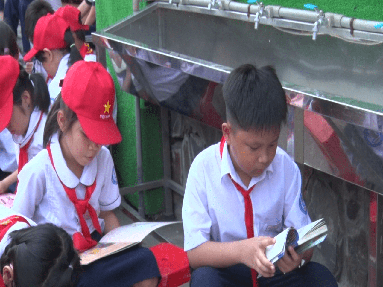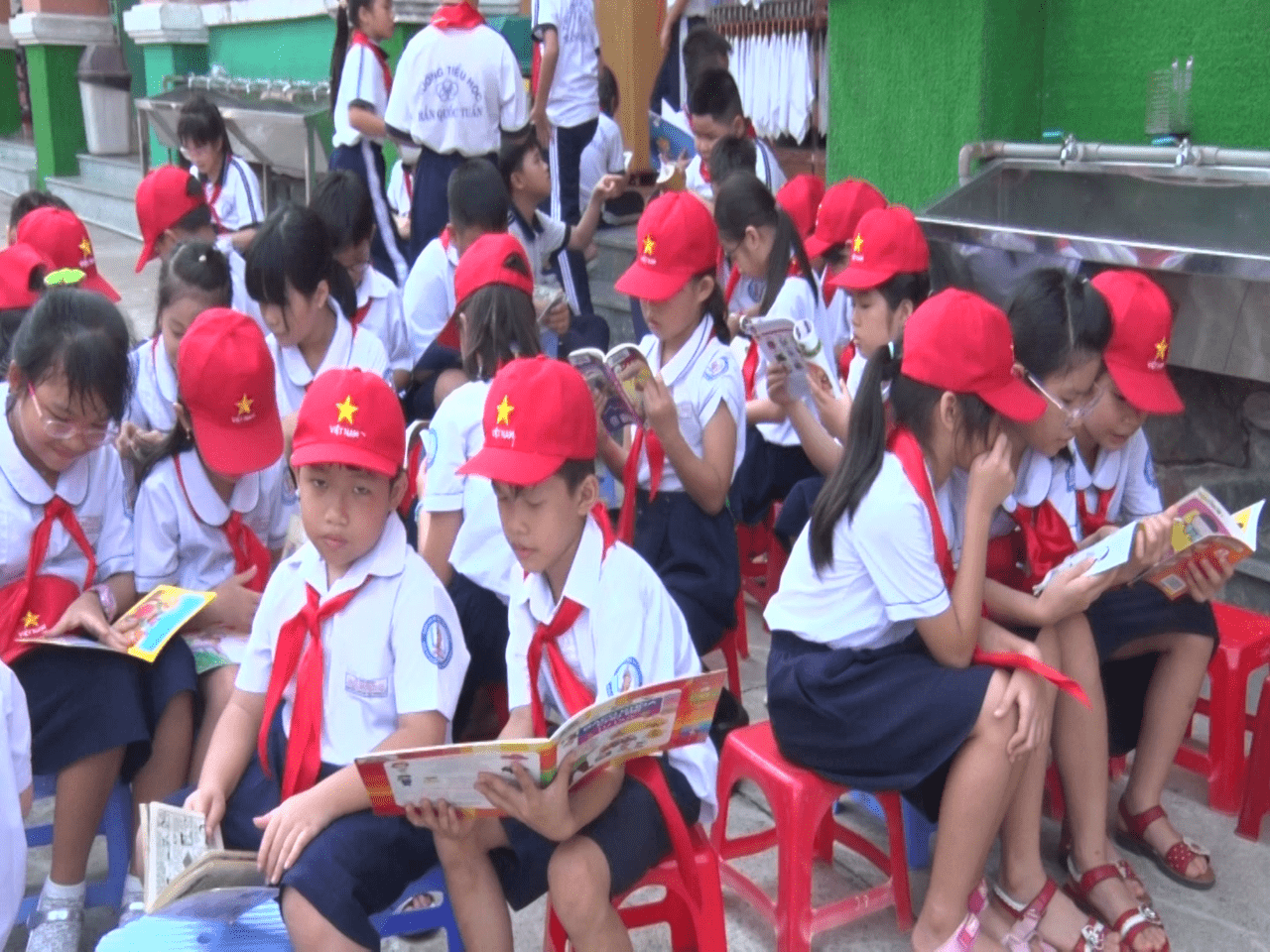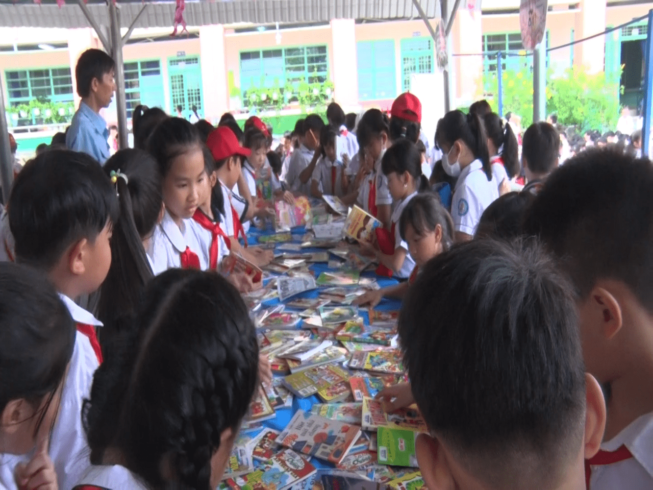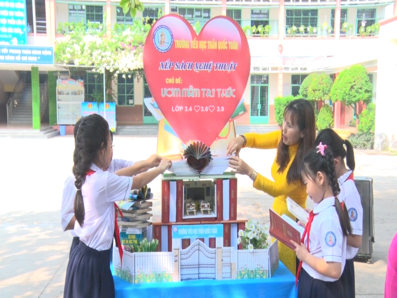 Với chủ đề “Cuốn sách em yêu”, tuyên truyền chủ quyền biển đảo thông qua đọc sách, Trung tâm Văn hóa, Thể thao và Truyền thanh thị xã cùng trường Tiểu học Trần Quốc Tuấn tổ chức trưng bày, triển lãm và phục vụ sách cho các em học sinh với gần 2.000 đầu sách gồm các thể loại như: truyện tranh, tạp chí, sách tham khảo… với nội dung phong phú, đa dạng, hình thức hấp dẫn; mô hình trưng bày sách đẹp mắt cùng những câu châm ngôn, danh ngôn, lời hay ý đẹp, lời trích dẫn của các học giả, nhân vật nổi tiếng nói về tầm quan trọng của sách và văn hóa đọc.