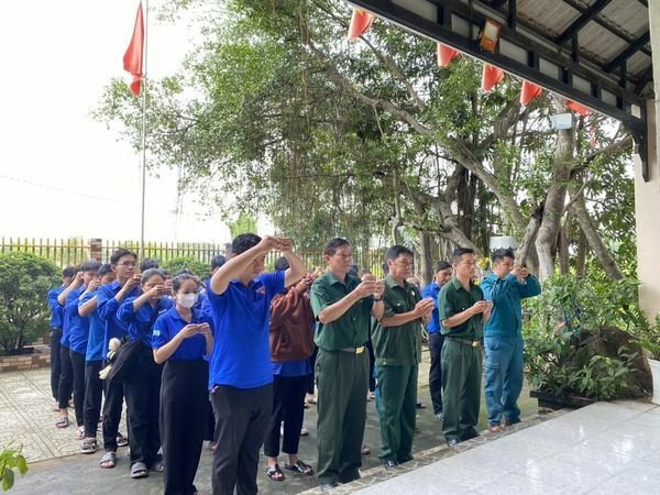 Tại buổi ra quân, đoàn viên thanh niên và các chiến sĩ vệ sinh khu vực thờ cúng, khuôn viên đền thờ, chỉnh trang cây xanh và thắp hương tưởng nhớ các anh hùng liệt sĩ.