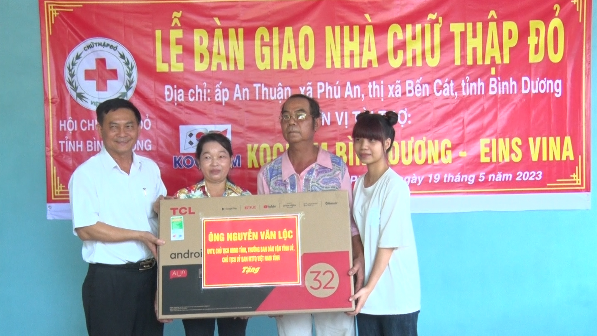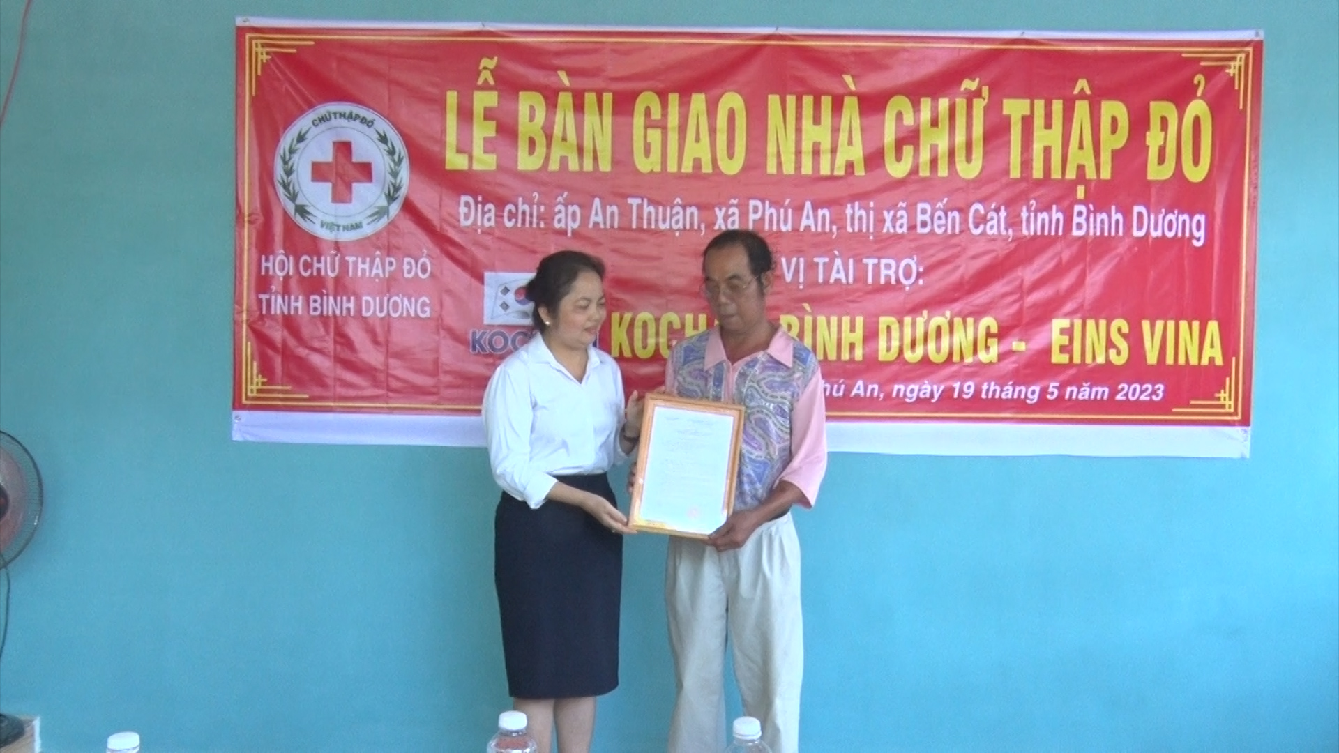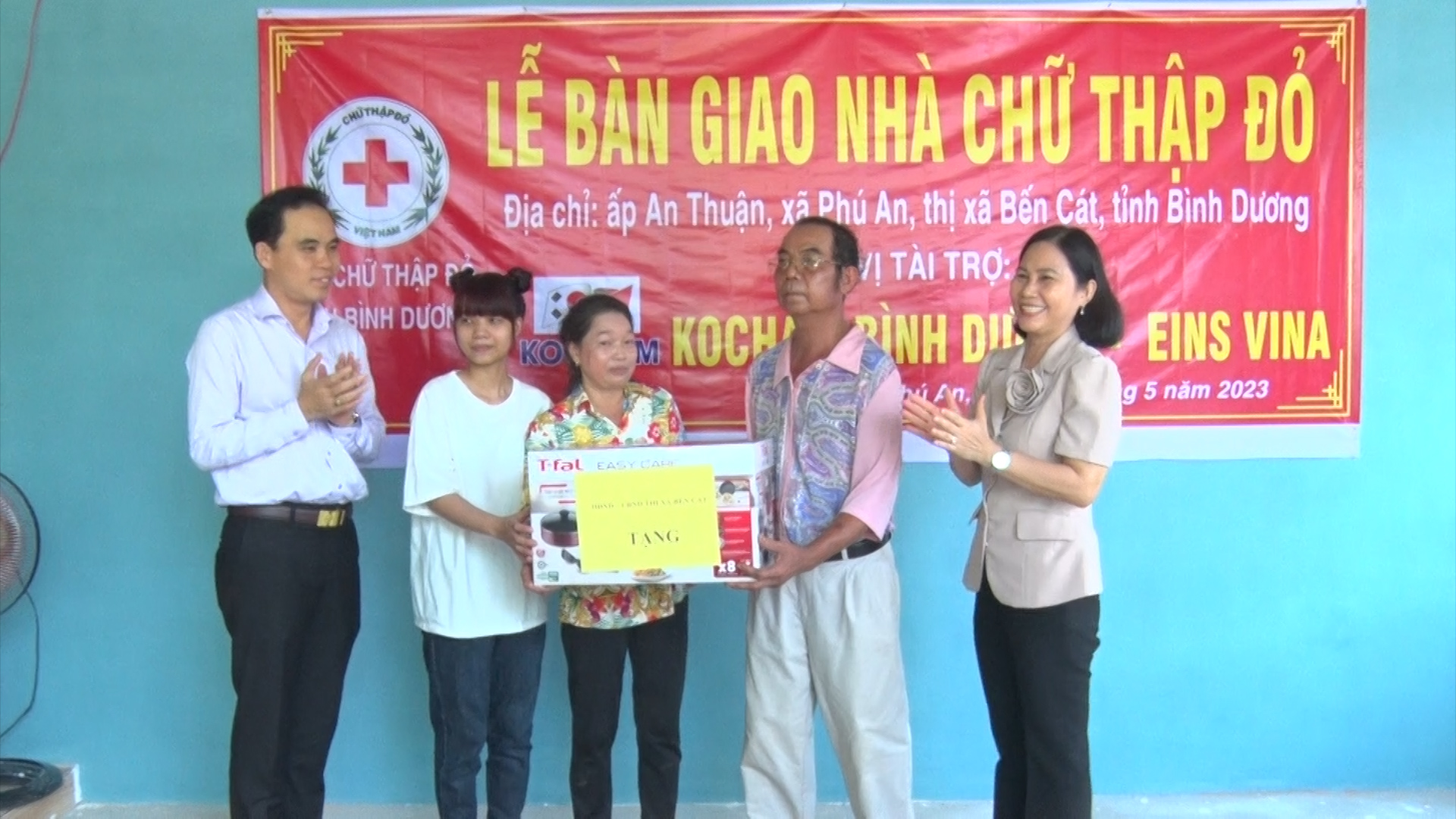 Căn nhà có diện tích 60m2, tường tô, mái tôn, nền lát gạch men. Tổng kinh phí 120 triệu đồng, do Chi hội KoCham Bình Dương – Eins Vina tài trợ 80 triệu đồng, gia đình đóng góp 40 triệu đồng.