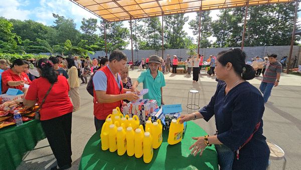 Ngày 11/8, UBND phường An Điền tổ chức phiên chợ 0 đồng với chủ đề "Hành trình nhân đạo, trao nhận yêu thương" tại Đạo tràng Hương Tuệ, khu phố An Mỹ.