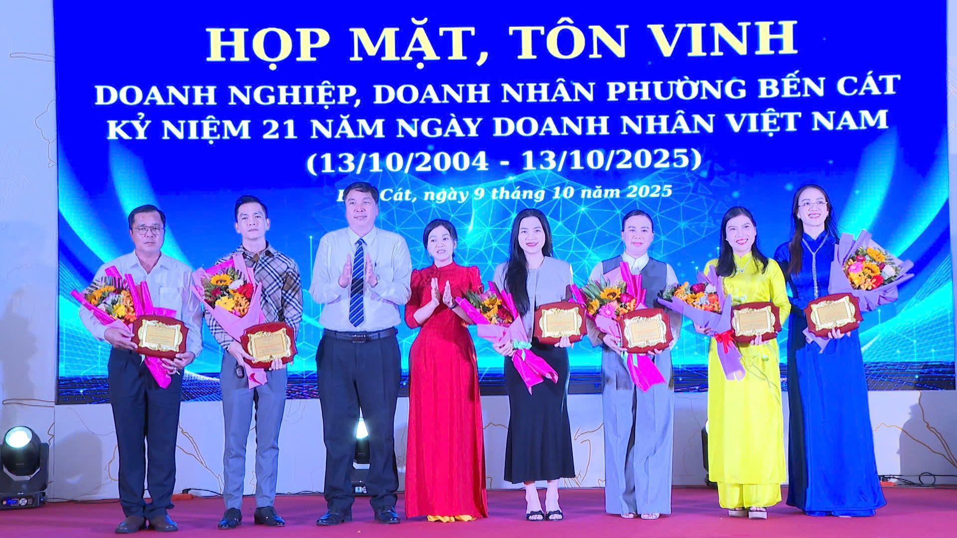 Sáng ngày 9/10, Đảng ủy, HĐND, UBND và Ủy ban MTTQ Việt Nam phường Bến Cát tổ chức họp mặt kỷ niệm 21 năm Ngày Doanh nhân Việt Nam (13/10/2004 – 13/10/2025), nhằm tri ân, tôn vinh những doanh nhân, doanh nghiệp tiêu biểu đã có nhiều đóng góp cho sự phát triển kinh tế - xã hội địa phương. Đến dự ông Lê Hồng Thông – Phó Chủ nhiệm Ủy ban Kiểm tra Thành ủy Thành phố Hồ Chí Minh; ông Nguyễn Trọng Ân – Bí thư Đảng ủy, Chủ tịch HĐND phường; ông Nguyễn Văn Chung – Phó Bí thư Thường trực, kiêm Giám đốc Trung tâm Chính trị phường; bà Trần Thị Thảo – Phó Bí thư, Chủ tịch UBND phường cùng đại diện các doanh nghiệp trú đóng trên địa bàn.