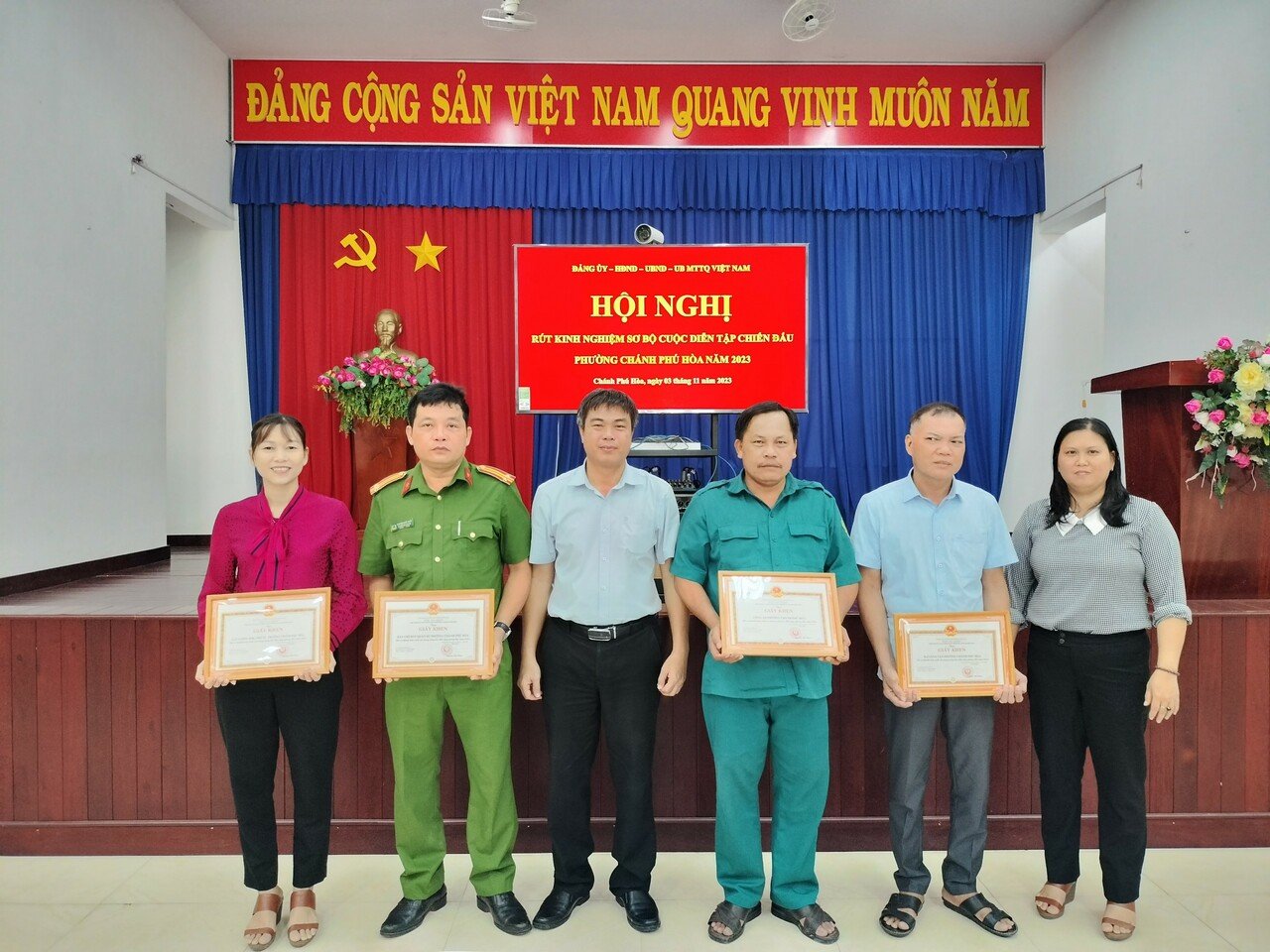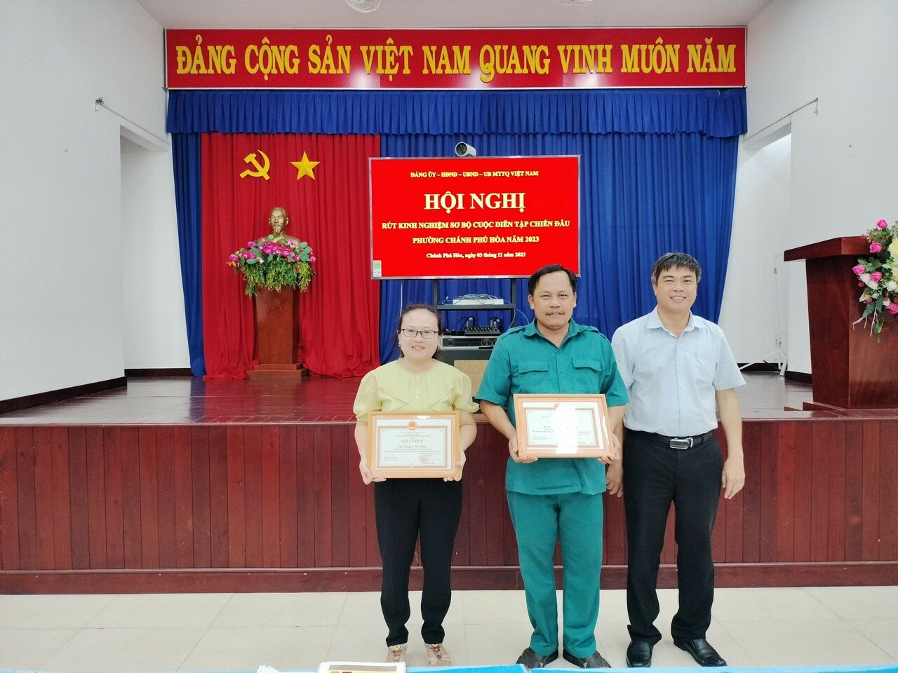 Dịp này, UBND phường đã khen thưởng cho 4 tập thể và 5 cá nhân có thành tích xuất sắc trong công tác diễn tập khu vực phòng thủ địa bàn phường năm 2023.