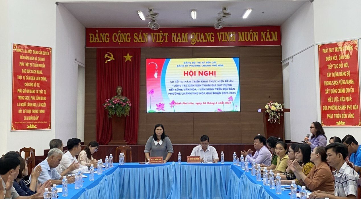 Phường Chánh Phú Hòa sơ kết 03 năm thực hiện Đề án 02 về “Công tác dân vận tham gia xây dựng nếp sống văn hoá - văn minh giai đoạn 2021-2025”