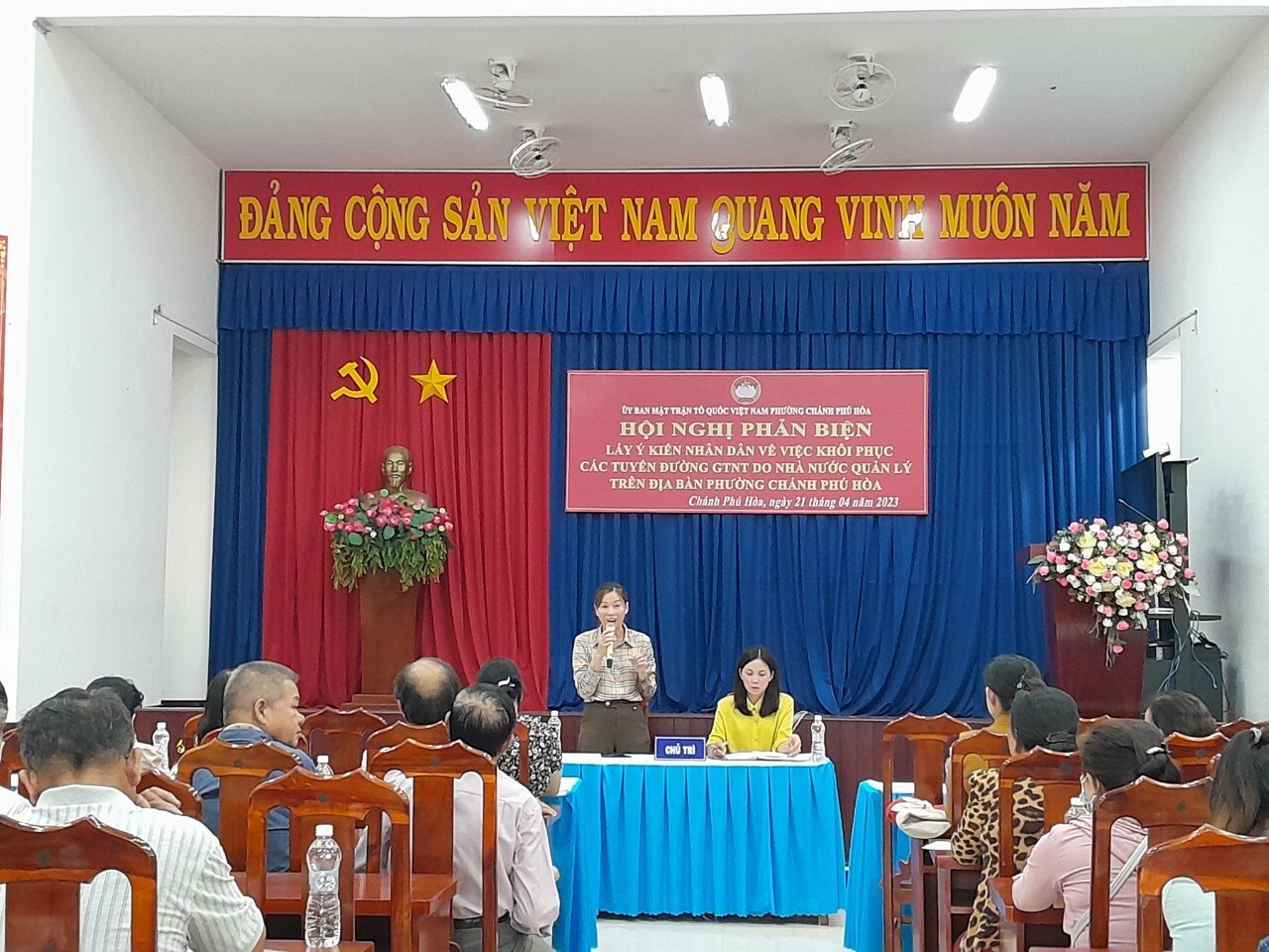 Phường Chánh Phú Hòa tổ chức hội nghị phản biện lấy ý kiến Nhân dân về việc khôi phục lại các tuyến đường GTNT do Nhà nước quản lý trên địa bàn phường