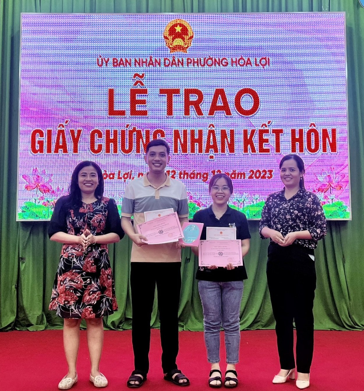 Phường Hòa Lợi thực hiện mô hình đăng ký và trao giấy chứng nhận kết hôn ngoài giờ hành chính