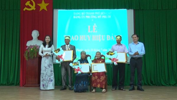 Dịp này, phường Mỹ Phước đã trao tặng Huy hiệu 60, 55, 50, 40 và 30 tuổi đảng cho 15 đảng viên.