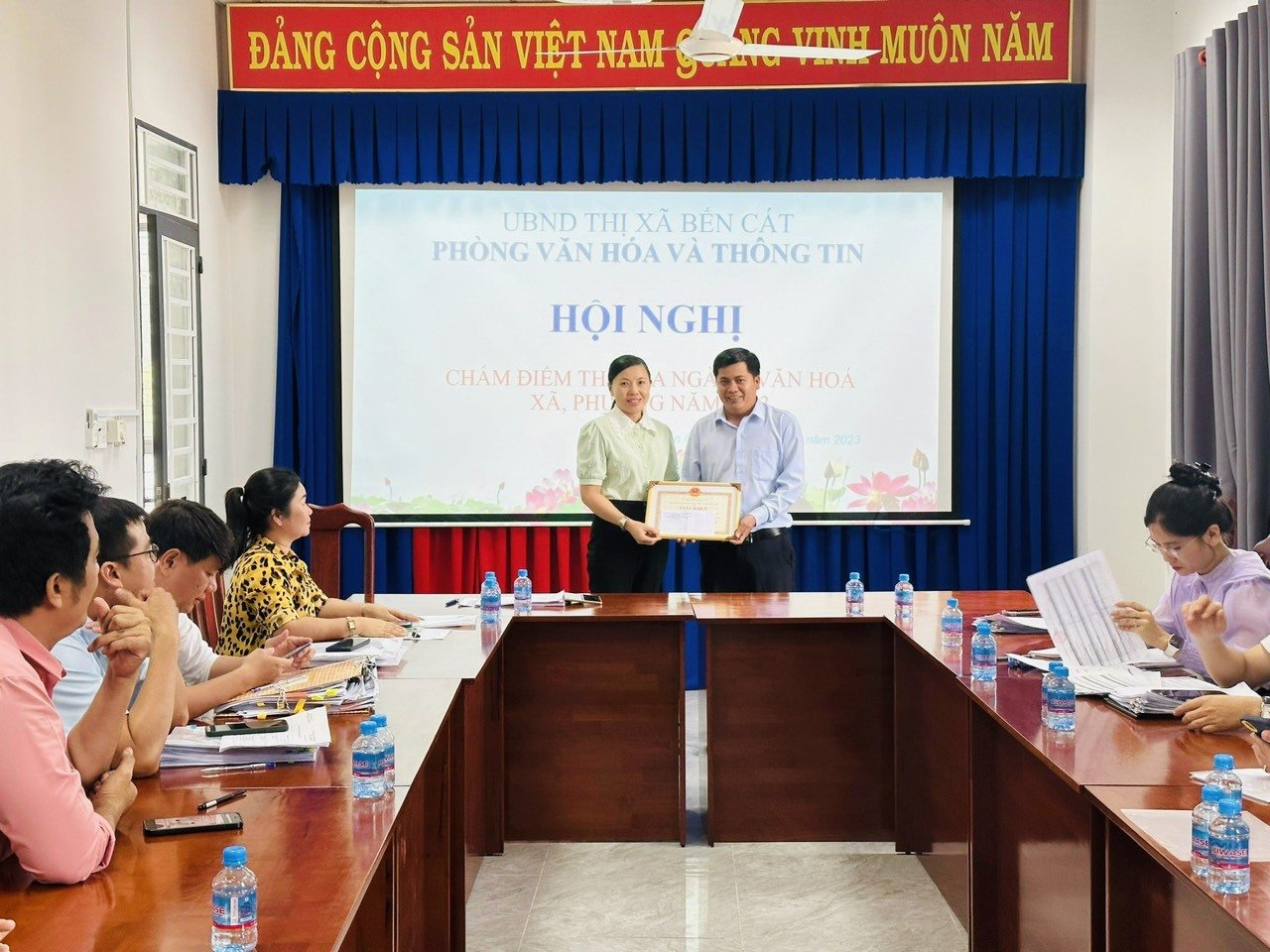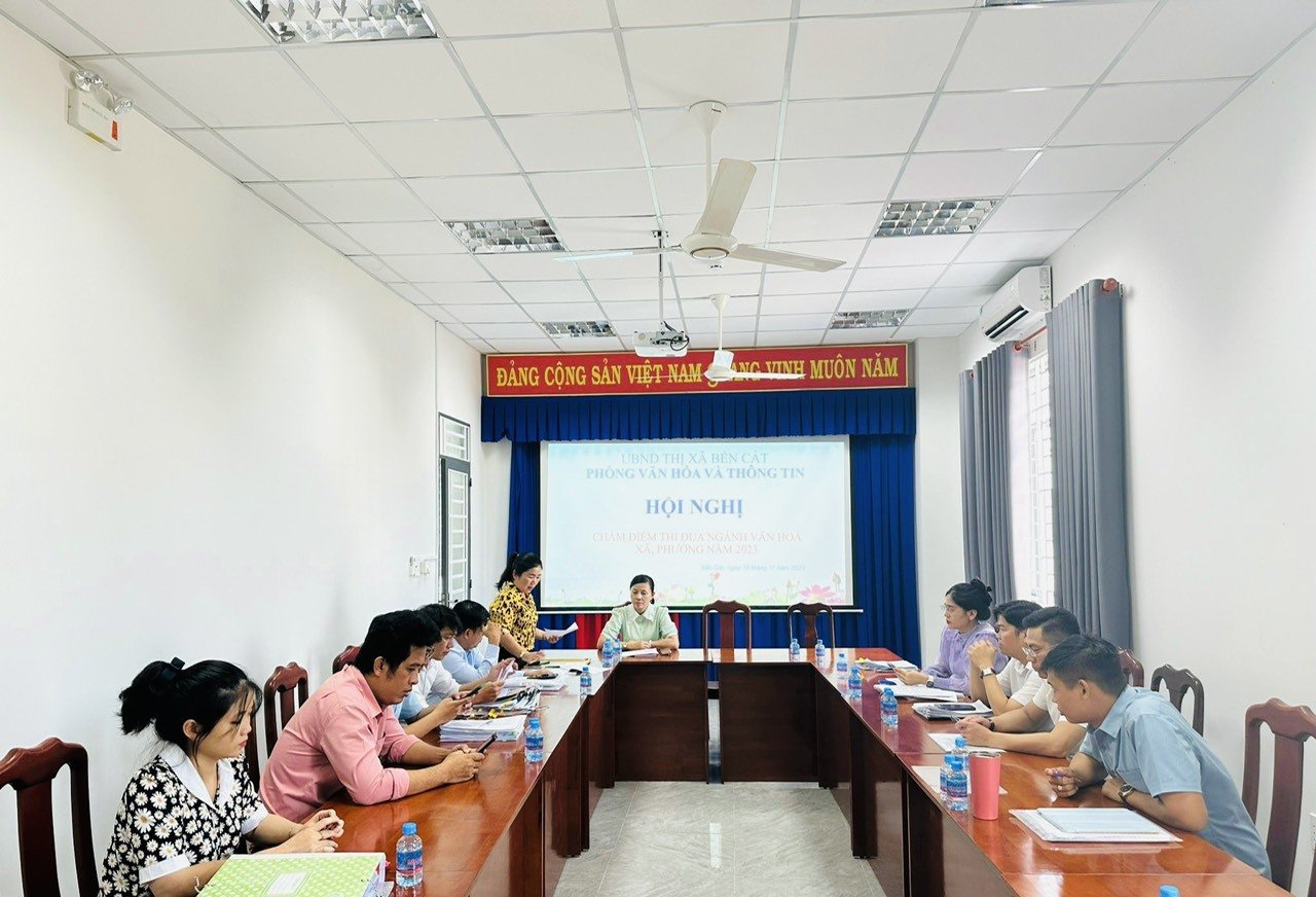 Phòng Văn hóa và Thông tin thị xã Bến Cát vừa tổ chức chấm điểm thi đua lĩnh vực văn hóa, thông tin, thể thao, du lịch và gia đình các xã, phường năm 2023.