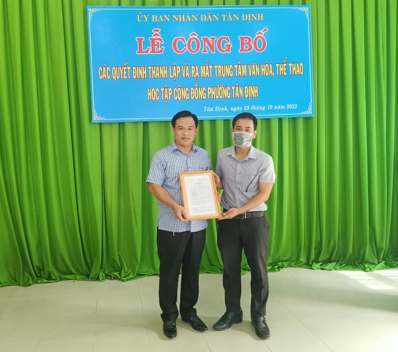 Tại buổi lễ đã thông qua các Quyết định thành lập Trung tâm Văn hóa, Thể thao – Học tập cộng đồng phường, Quyết định thành lập Ban giám đốc; Quyết định bổ nhiệm giám đốc Trung tâm, Quy chế hoạt động của Trung tâm Văn hóa, Thể thao – Học tập cộng đồng phường.