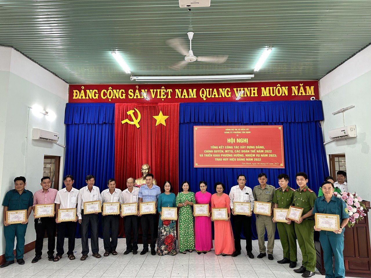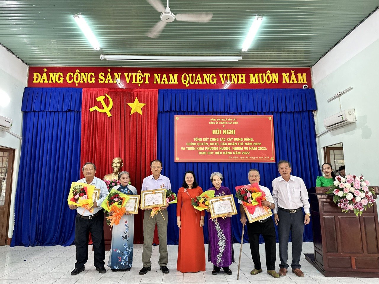 Dịp này, phường Tân Định đã trao tặng Huy hiệu 50 năm, 45 năm 40 năm và 30 năm tuổi Đảng cho 07 đảng viên và tặng giấy khen của Đảng bộ phường, UBND phường cho các tập thể, cá nhân hoàn thành xuất sắc nhiệm vụ năm 2022.