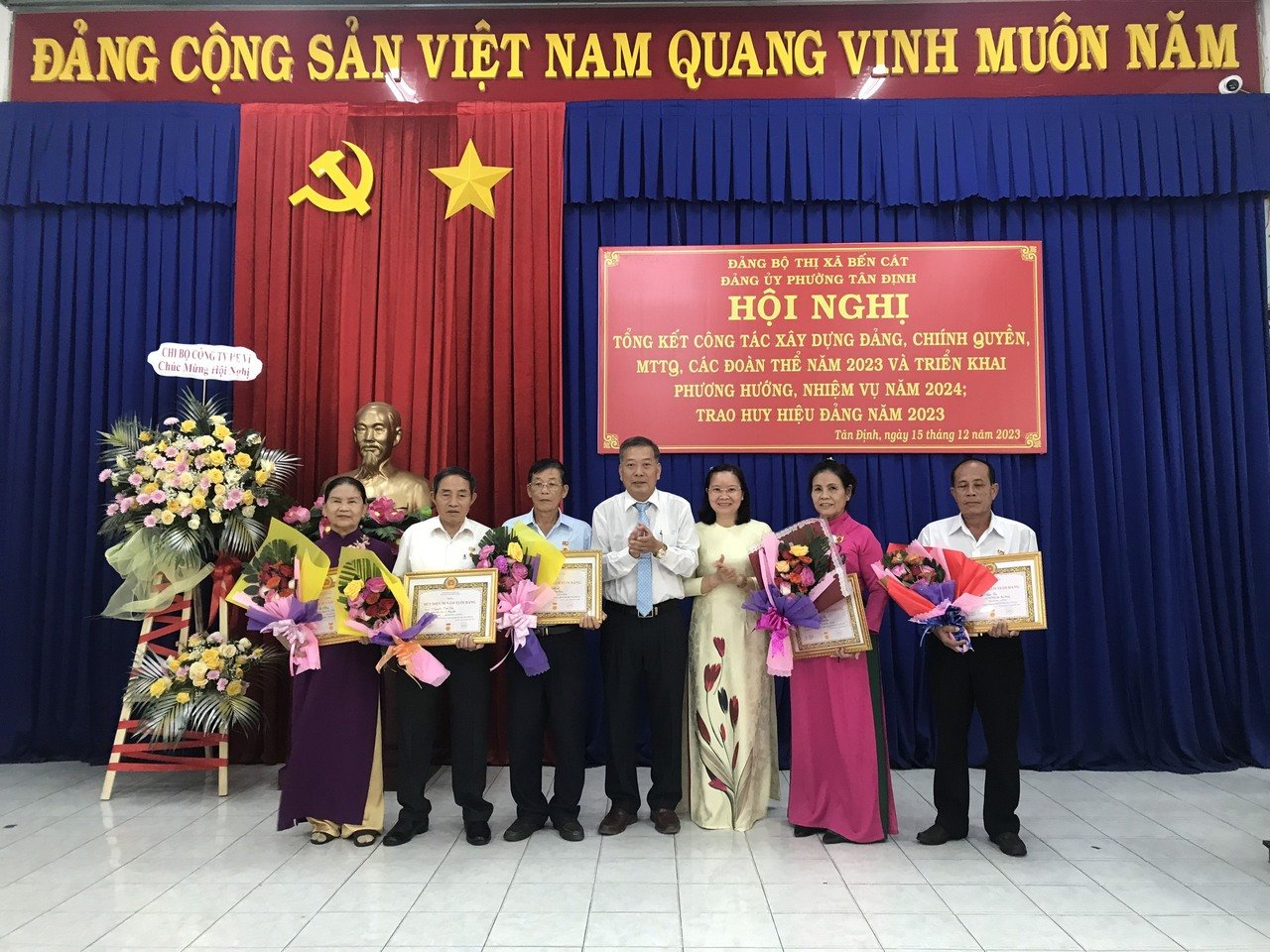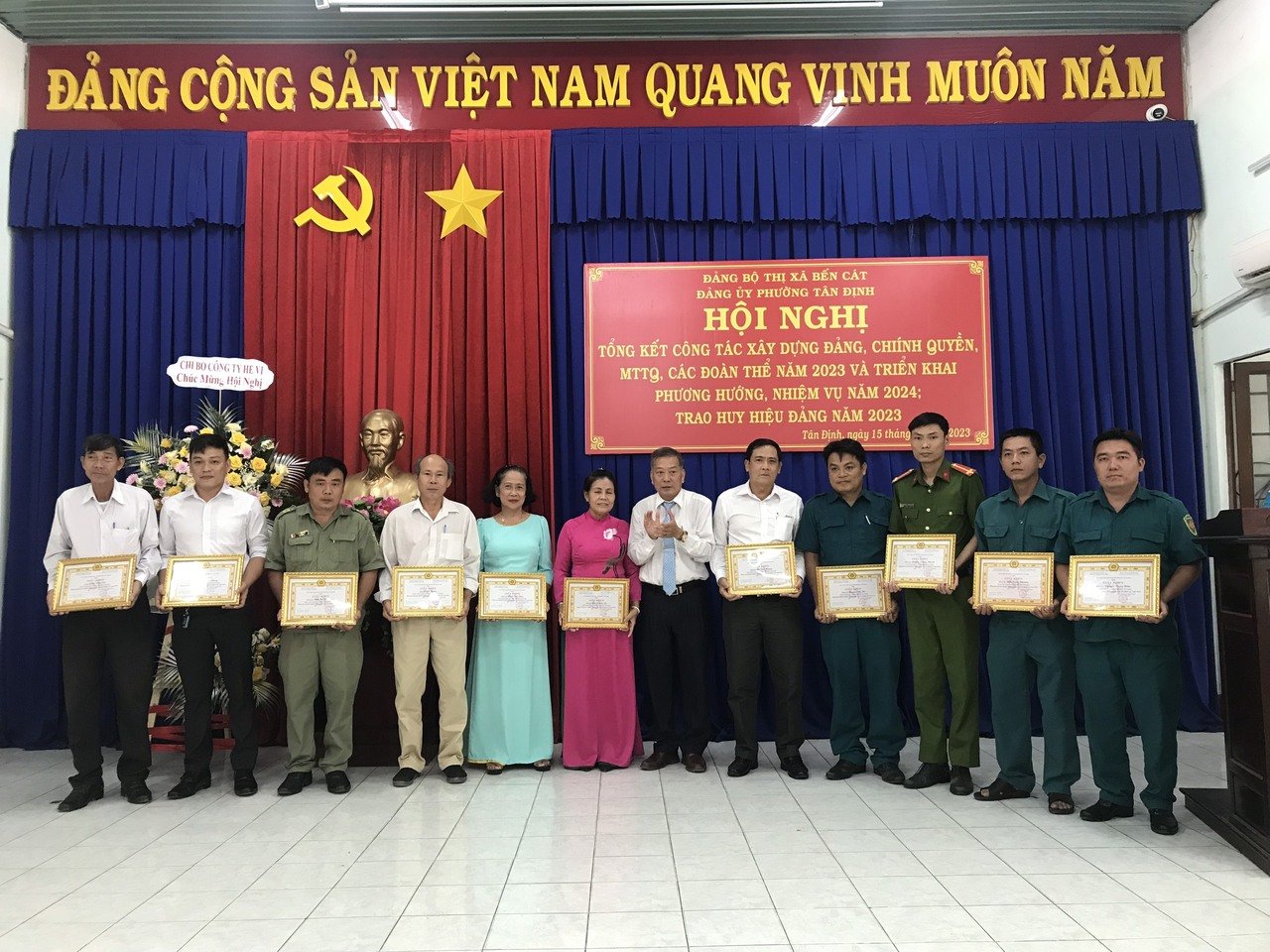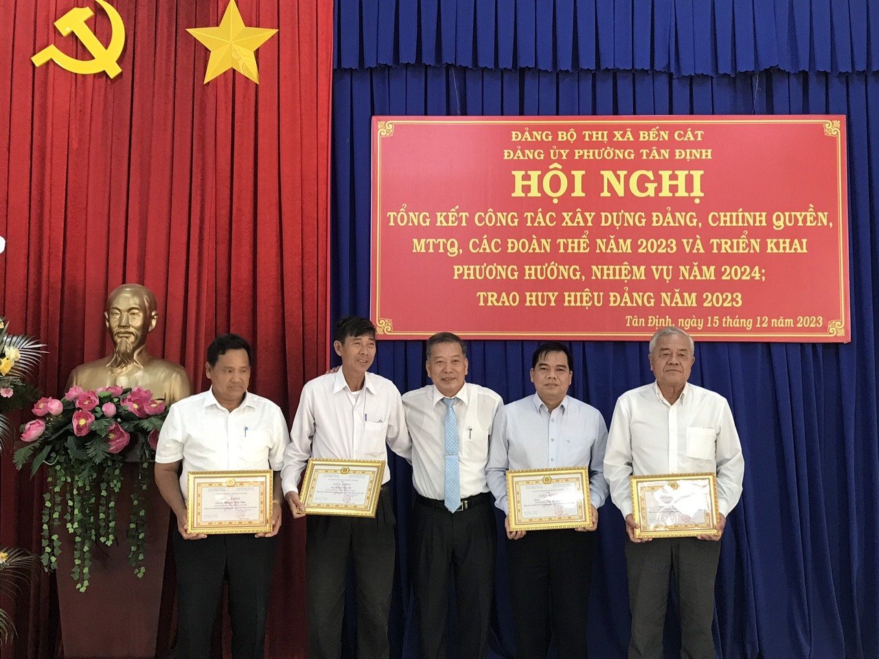 Dịp này, Đảng ủy phường trao huy hiệu 30 năm, 40 năm và 50 năm tuổi Đảng cho 05 đảng viên; khen thưởng 06 tập thể và 69 cá nhân hoàn thành xuất sắc nhiệm vụ năm 2023.