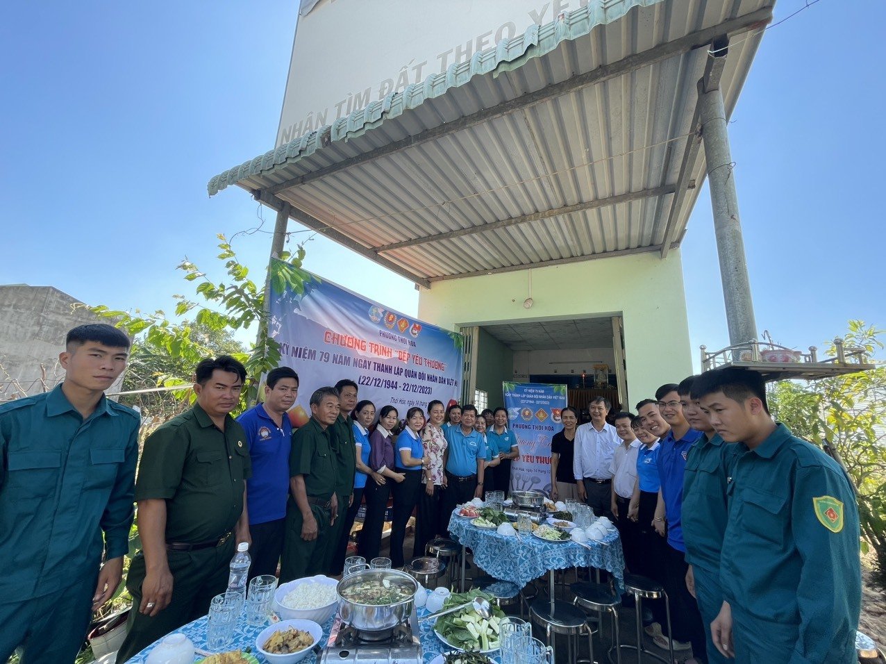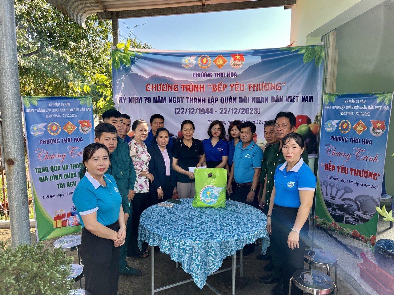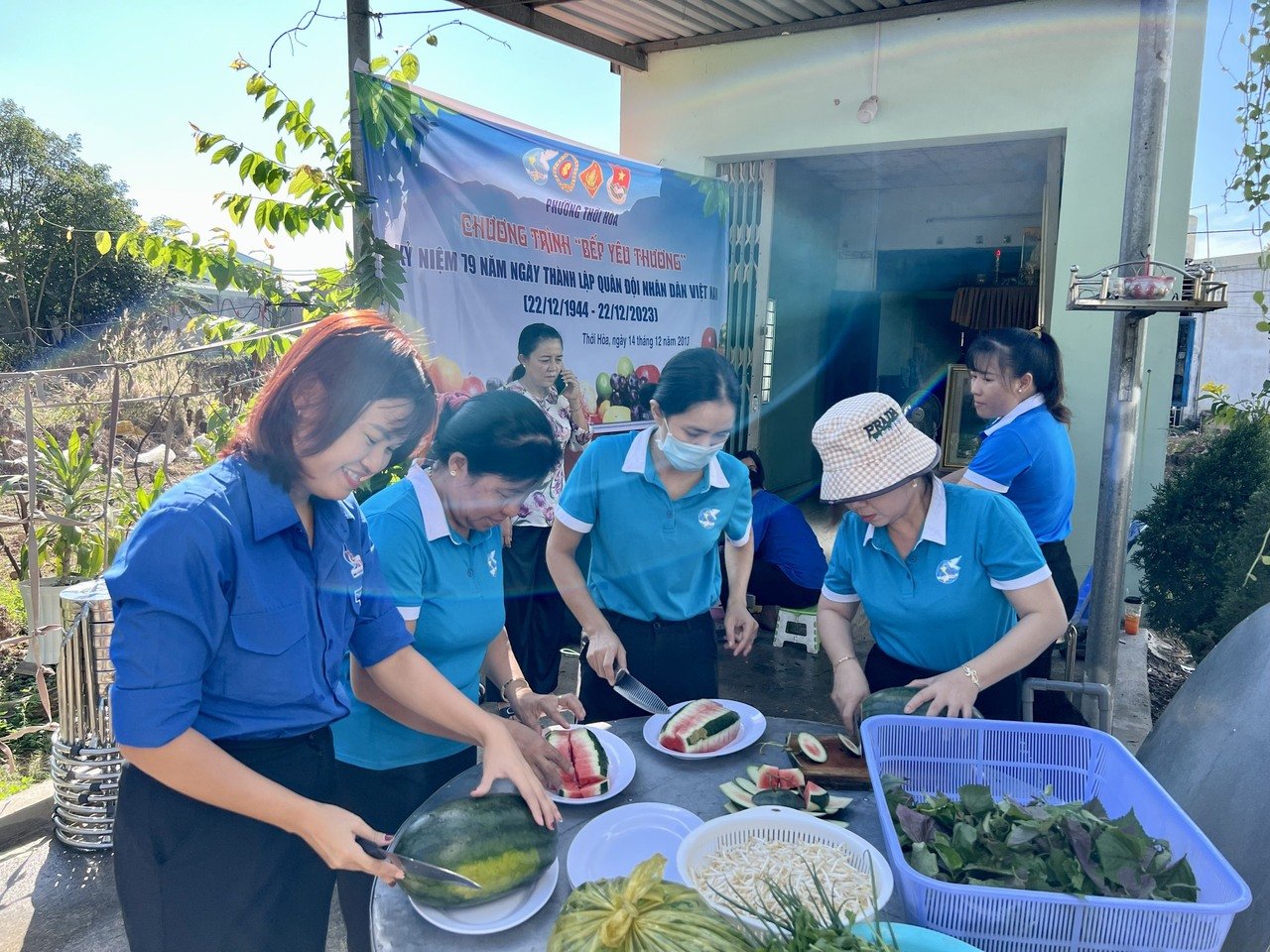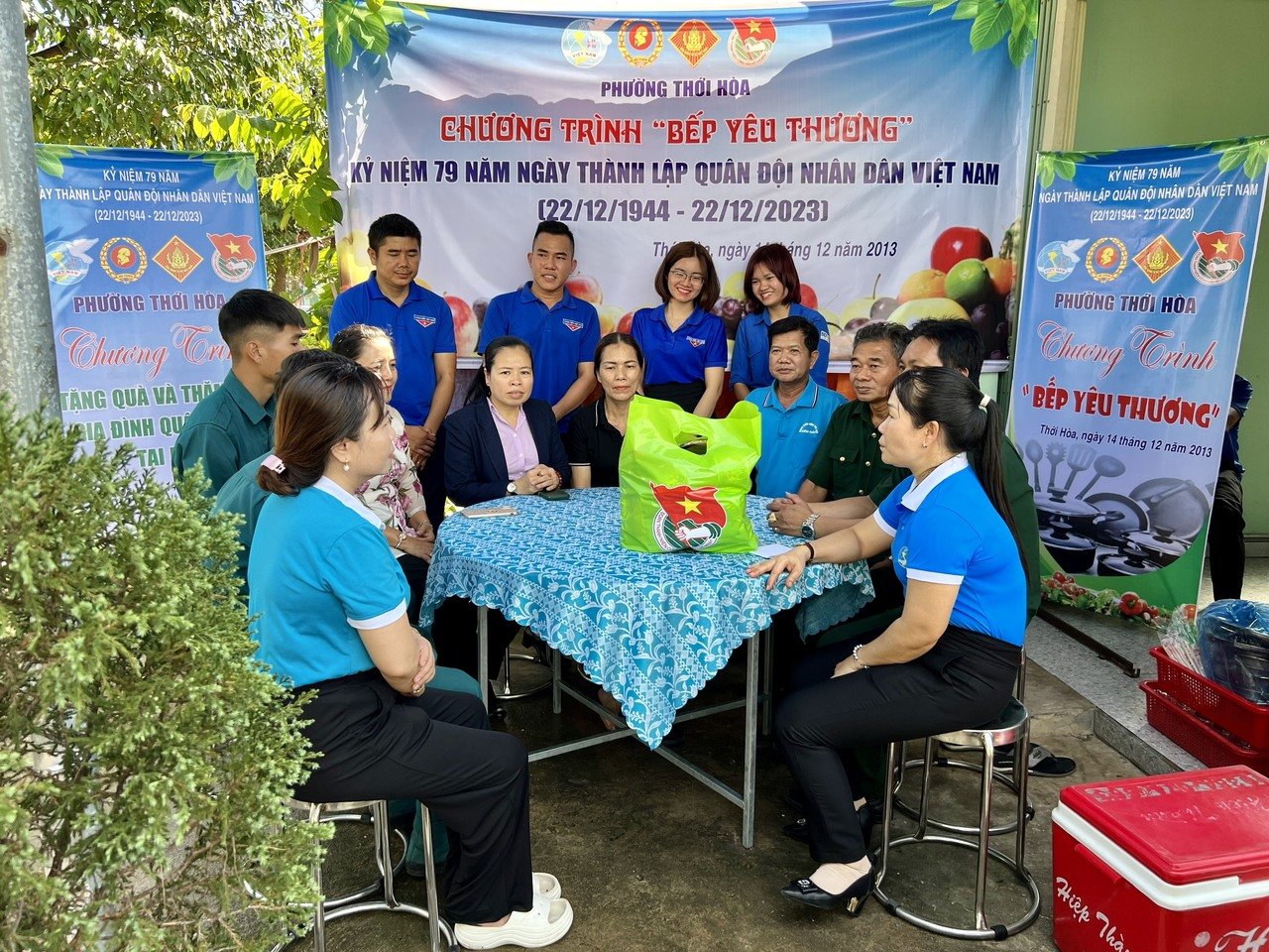 Thiết thực chào mừng kỷ niệm 79 năm ngày thành lập Quân đội Nhân dân Việt Nam (22/12/1944 – 22/12/2023), ngày 14/12, Ban Chỉ huy Quân sự, Hội Liên hiệp Phụ nữ, Hội Cựu Chiến binh và Đoàn thanh niên phường Thới Hòa cùng phối hợp tổ chức thực hiện mô hình “Bếp yêu thương” gắn với thực hiện công tác dân vận quý IV năm 2023.