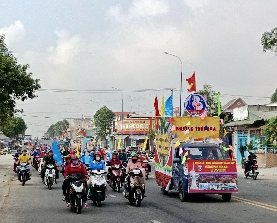 Phường Thới Hòa tổ chức diễu hành chào mừng thành lập thành phố Bến Cát
