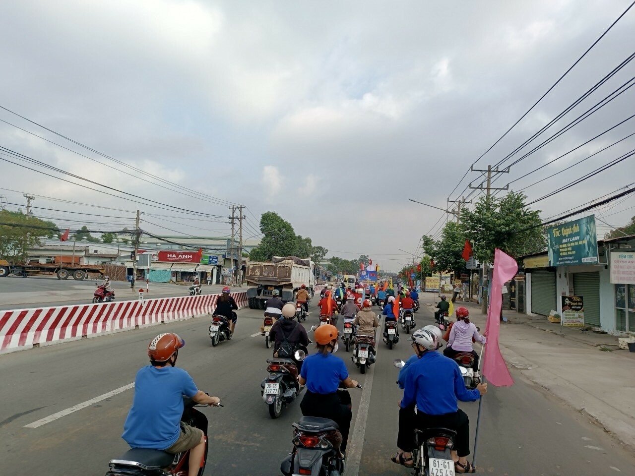 Tham gia đoàn diễu hành gồm xe hoa tuyên truyền lưu động, xe mô tô Câu lạc bộ mô tô Đồng Nai cùng đoàn xe máy của khối đông cán bộ, công chức, đoàn viên, hội viên, người lao động và lực lượng công an, quân sự phường.
