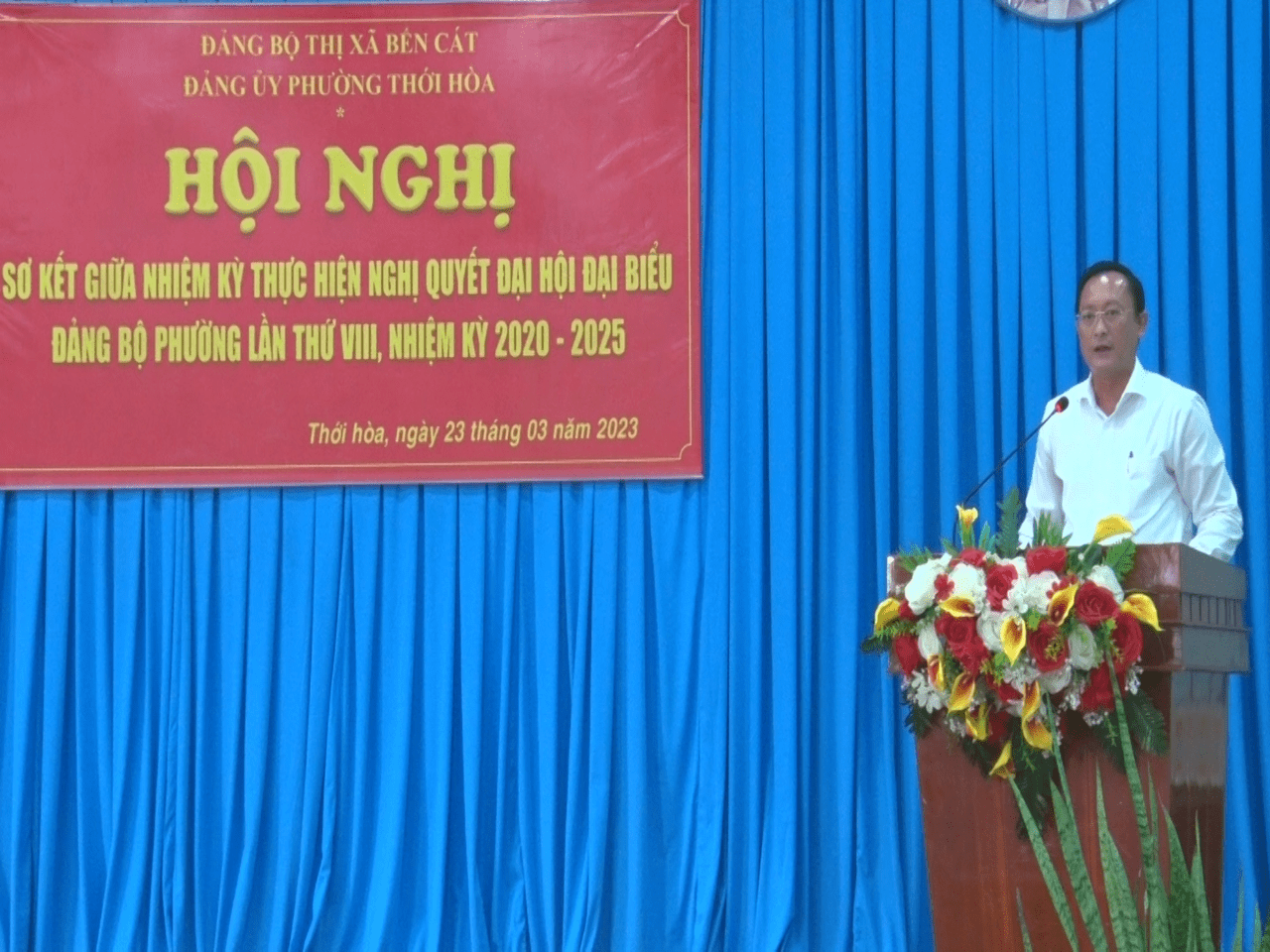 Phát biểu chỉ đạo tại hội nghị, ông Nguyễn Trọng Ân - Phó Bí thư Thị ủy, Chủ tịch UBND thị xã Bến Cát thống nhất cao mục tiêu, nhiệm vụ, giải pháp mà Đảng ủy phường đã đề ra. Ông nhấn mạnh: Đảng ủy cần có giải pháp cụ thể hơn để thực hiện tốt mục tiêu trong nửa nhiệm kỳ còn lại. Trong đó, cần ra soát mục tiêu nào đạt, mục tiêu nào chưa đạt để xây dựng kế hoạch cụ thể, bám sát với quy hoạch phát triển; quan tâm giải quyết các chế độ chính sách cho các đối tượng chính sách, hộ nghèo, trẻ em, công nhân lao động có hoàn cảnh khó khăn; quan tâm đến cải cách THHC; tập trung xây dựng Đảng bộ vững mạnh…