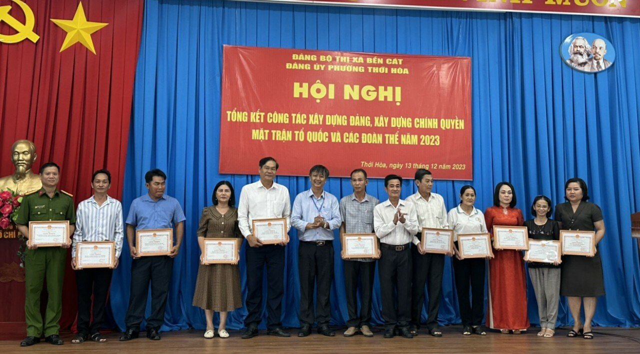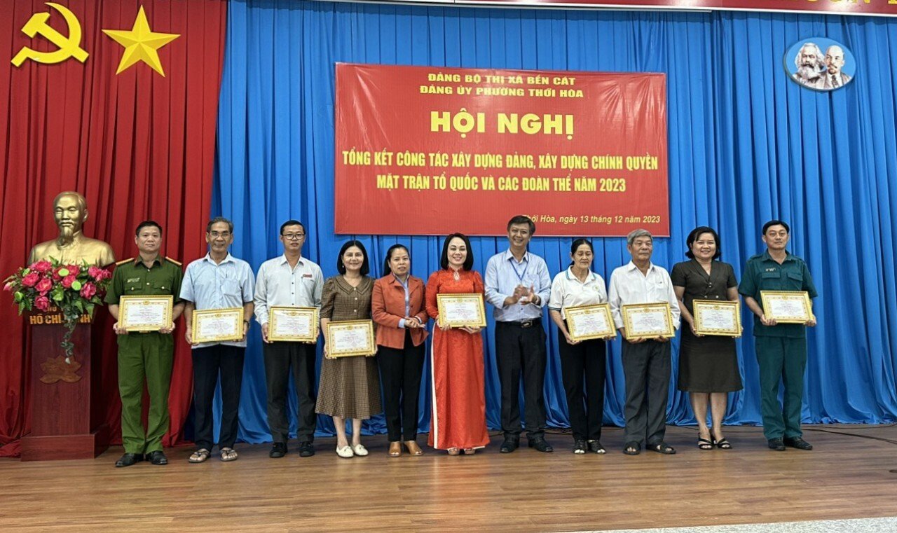Dịp này, phường Thới Hòa đã khen thưởng cho 09 chi bộ trực thuộc đạt tiêu chuẩn hoàn thành xất sắc nhiệm vụ năm 2023.