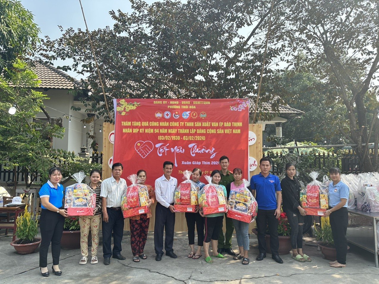 Ngày 01/02, Đảng ủy, HĐND, UBND, Ủy ban MTTQ Việt Nam phường Thới Hòa tổ chức tặng quà công nhân Công ty TNHH sản xuất ván ép Bảo Thịnh tại khu phố 4, phường Thới Hòa nhân kỷ niệm 94 năm Ngày thành lập Đảng Cộng sản Việt Nam (03/02/1930 – 03/02/2024) và mừng Xuân Giáp Thìn.