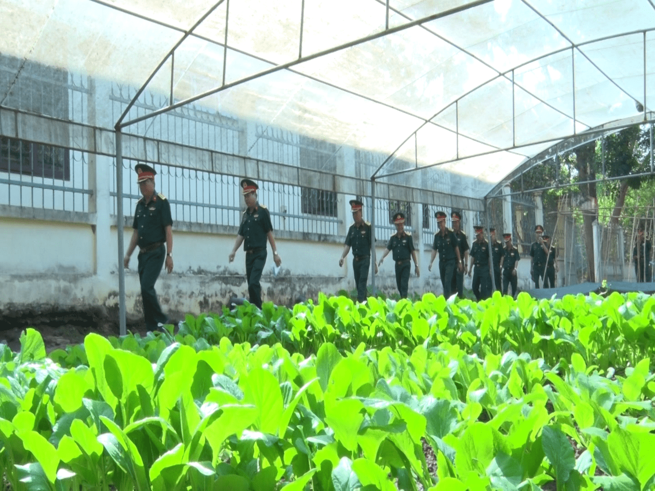 Theo đó, đoàn đến tham quan thực tế trụ sở Trung đội Dân quân thường trực, khu sinh hoạt, khu vũ khí trang bị, khu tăng gia sản xuất, khu vực hậu cần…