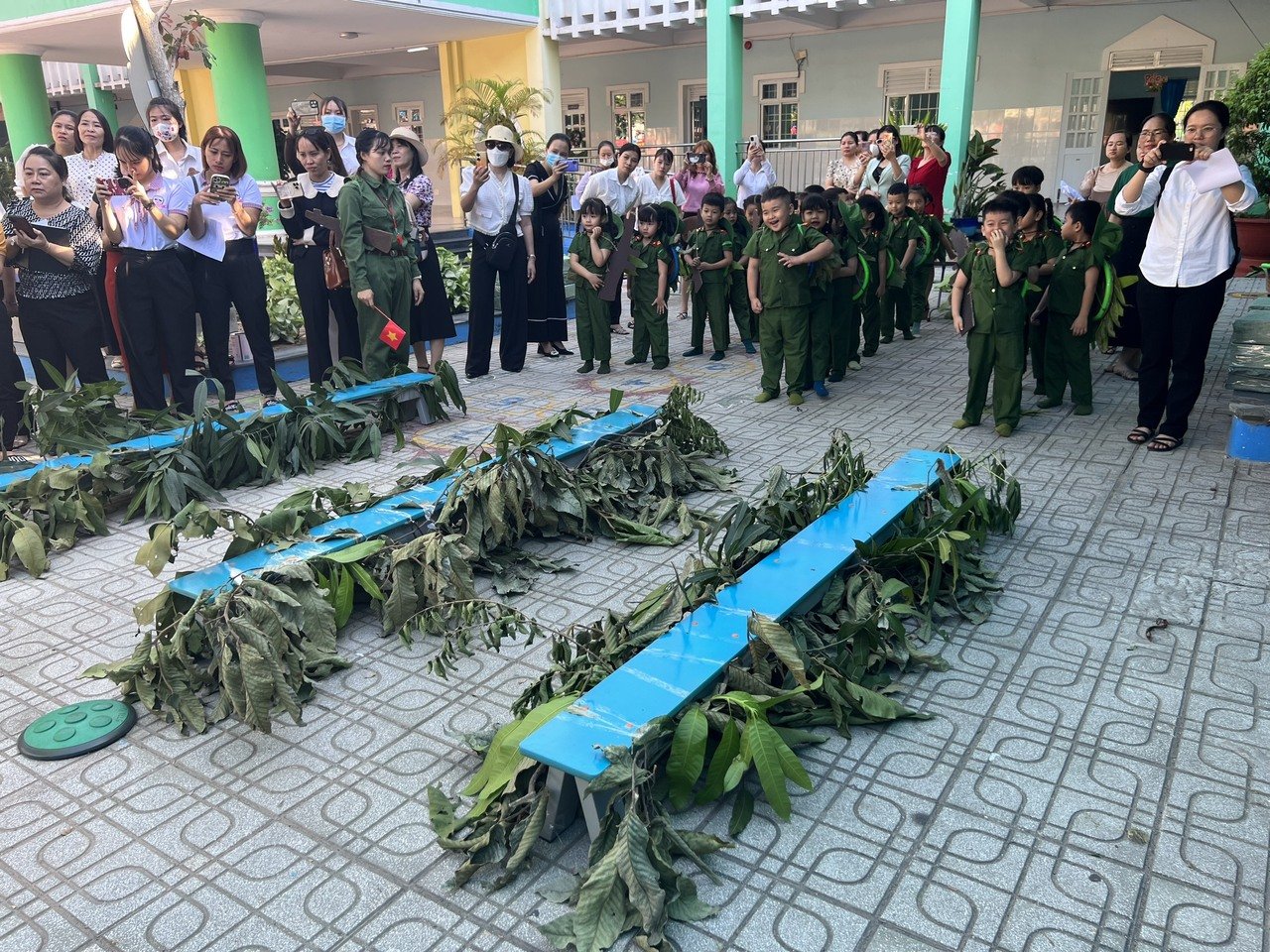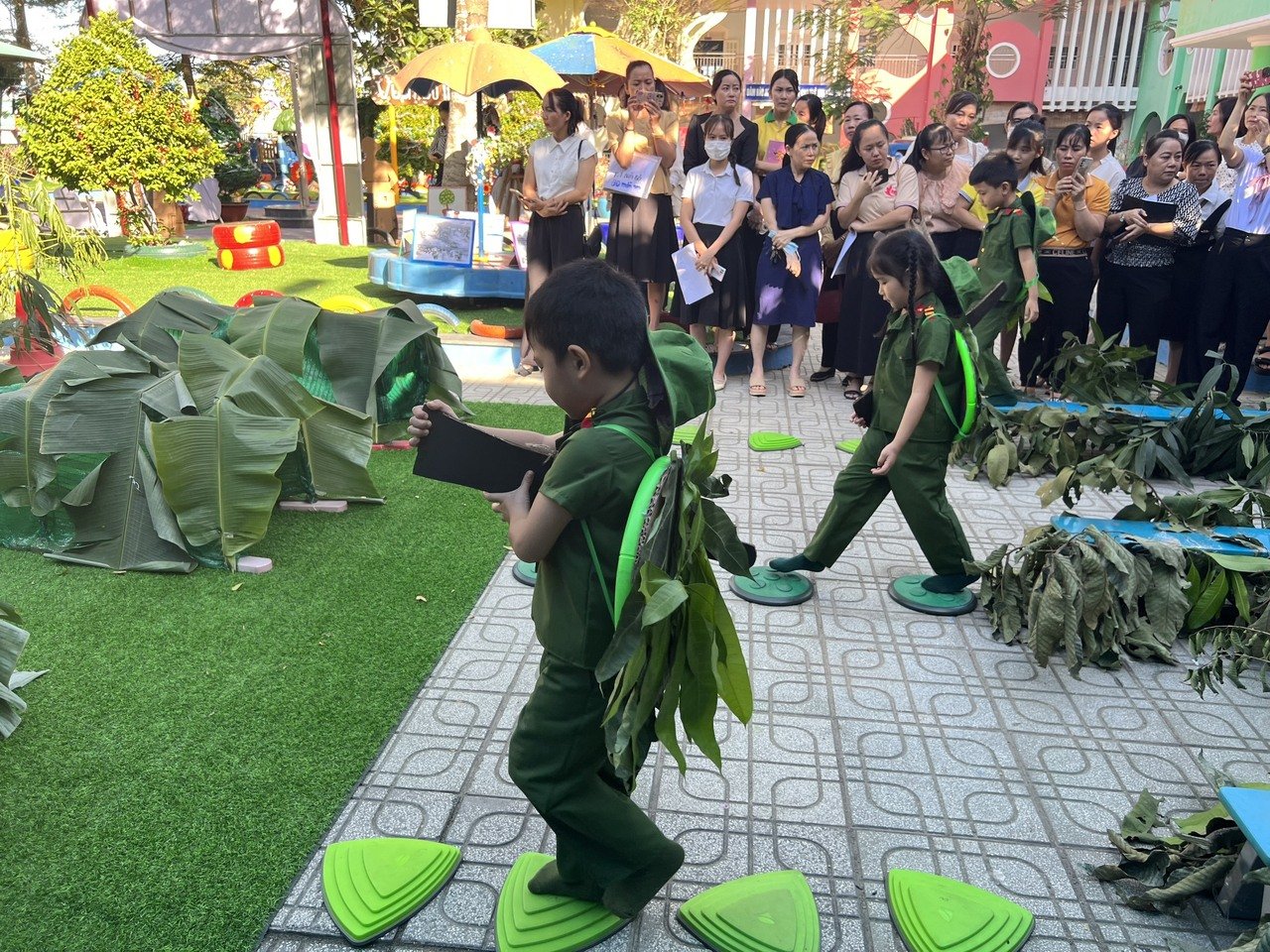 Tại buổi sinh hoạt, các đại biểu được tham dự hoạt động giáo dục “Bé trải nghiệm tập làm chú bộ đội” với các nội dung: Vui cùng chiến sỹ; Những chiến sỹ tài ba; Thử tài cùng chiến sỹ đồng thời tham quan môi trường trong và ngoài nhóm lớp, mô hình “Trường học thân thiện”, “Lớp học yêu thương”; tham quan mô hình “Bữa ăn tự phục vụ” của khối lớp lá…