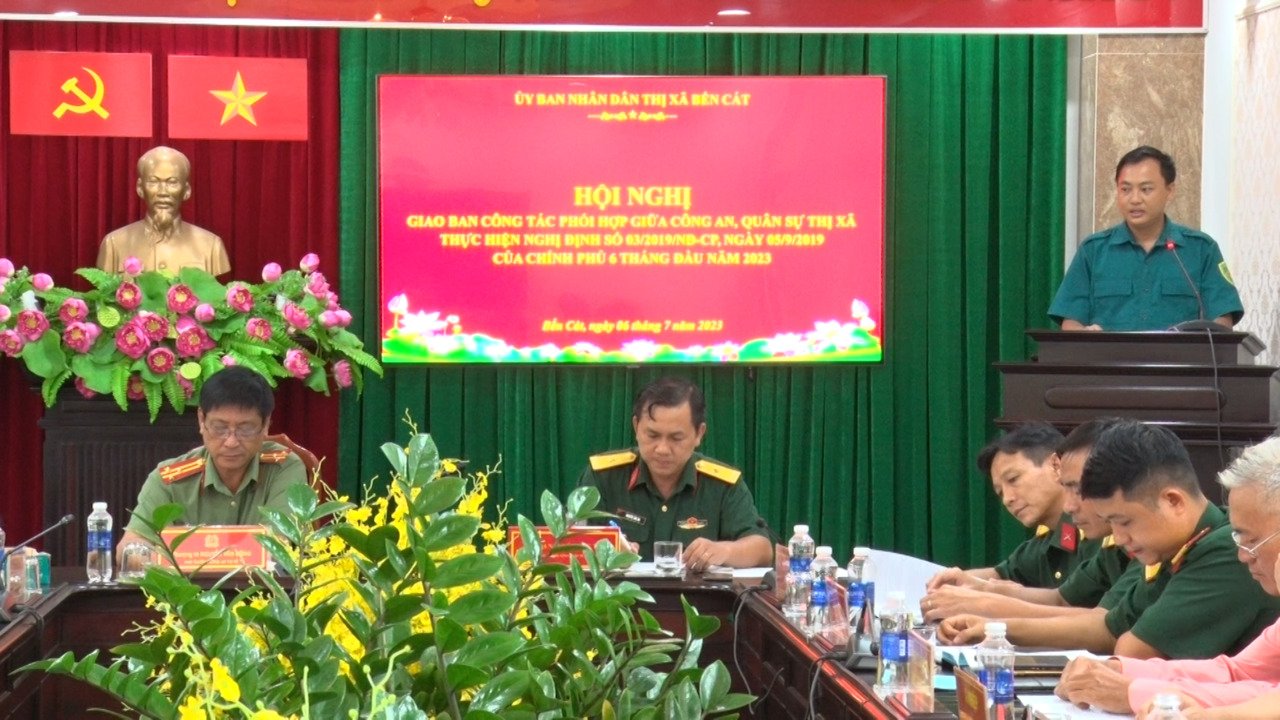 Trong 6 tháng cuối năm 2023, Công an – Quân sự thị xã tiếp tục phối hợp nắm chắc tình hình trên các lĩnh vực: an ninh chính trị, an ninh nông thôn, an ninh kinh tế, an ninh trật tự các khu, cụm công nghiệp…Thực hiện tốt chế độ thông tin báo cáo, trao đổi tình hình; phối hợp chặt chẽ trong công tác tuyển quân; công tác giáo dục quốc phòng - an ninh và công tác tuyên truyền thực hiện đường lối quốc phòng toàn dân gắn với an ninh nhân dân ở địa phương và công tác PCCC trên địa bàn thị xã. Đẩy mạnh công tác xây dựng phong trào quần chúng bảo vệ an ninh Tổ quốc; Phối hợp giữa các lực lượng Công an xã, phường, dân phòng, dân quân, bảo vệ dân phố, lực lượng bảo vệ các khu, cụm công nghiệp, tổ chức tuần tra vũ trang, ban ngày, ban đêm nhằm phát hiện, phòng ngừa, ngăn chặn các loại tội phạm, nhất là tội phạm trộm cắp tài sản ở các khu, cụm công nghiệp, khu dân cư, nhà dân ven các trục lộ giao thông…