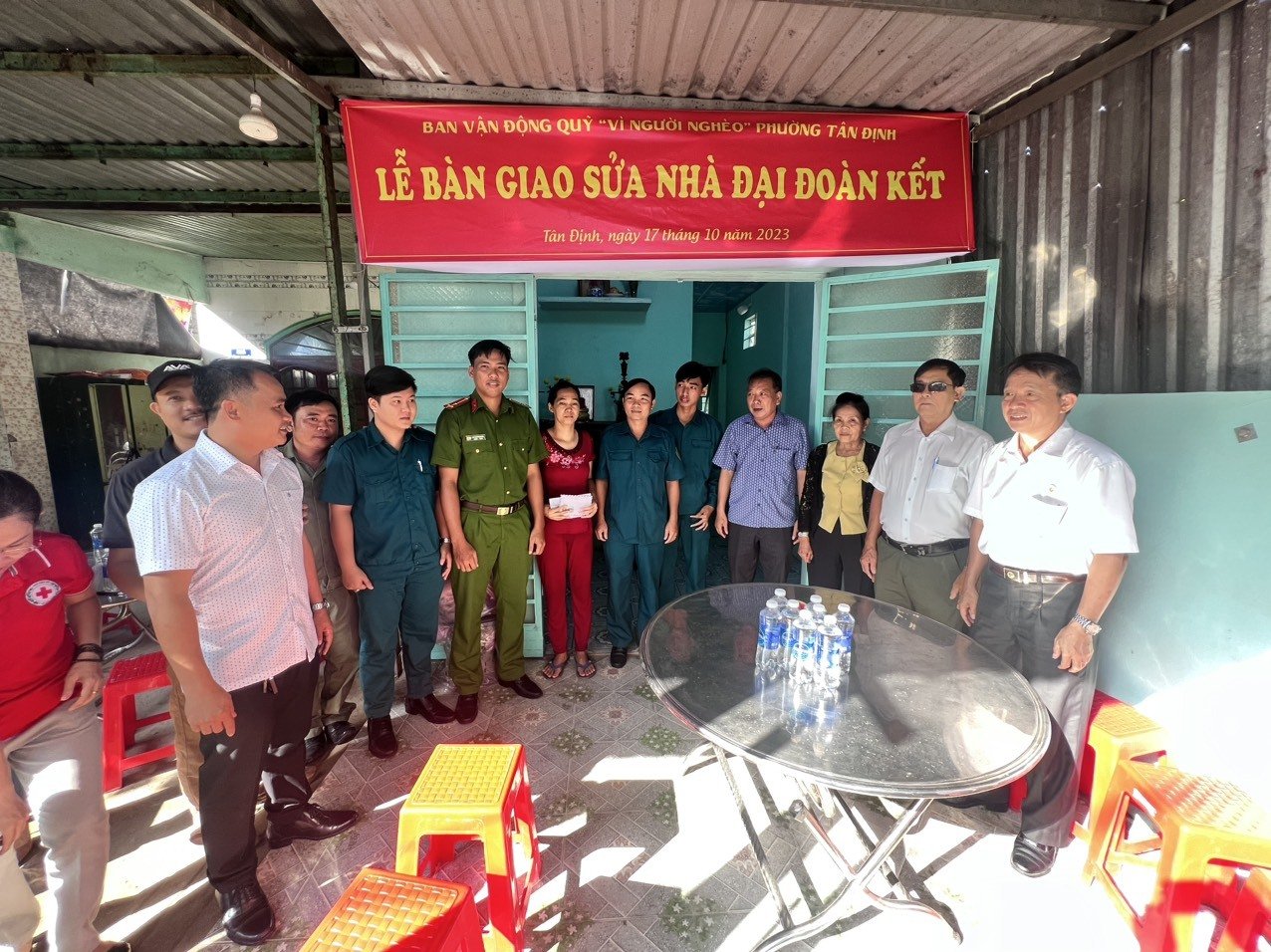 Ngày 17/10, Ban vận động quỹ "Vì người nghèo" phường Tân Định tổ chức bàn giao sửa chữa nhà đại đoàn kết cho hộ bà Nguyễn Thị Cẩm Tú, ngụ tổ 2 khu phố 1, phường Tân Định, thị xã Bến Cát.