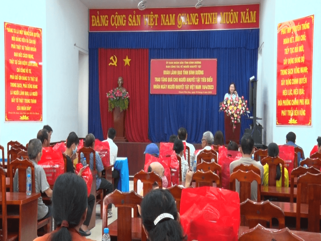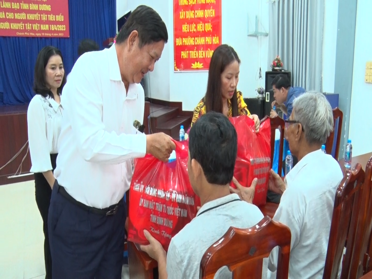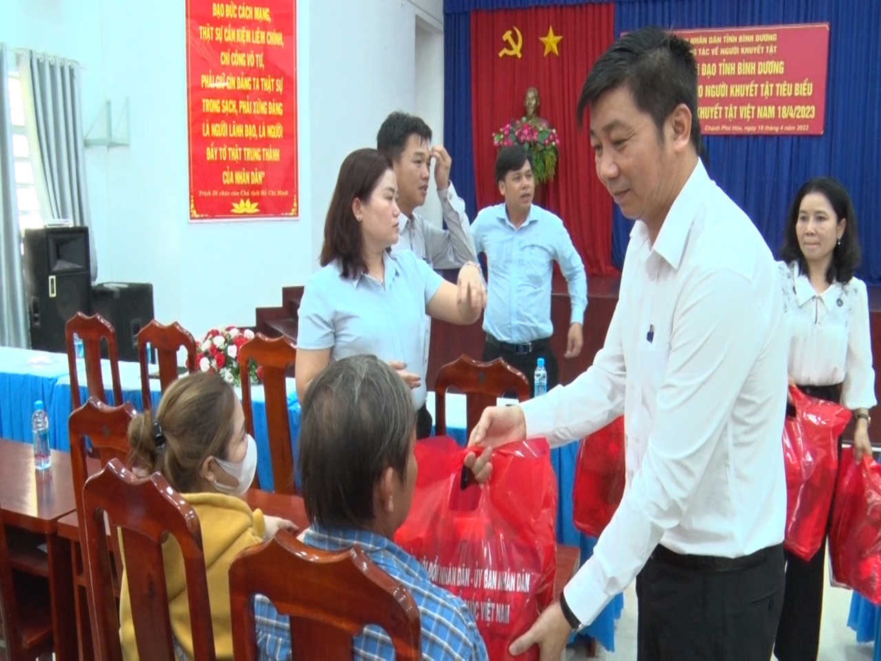 Sáng ngày 18/4, tại phường Chánh Phú Hòa, Đoàn lãnh đạo tỉnh Bình Dương, Phòng Lao động - Thương binh và Xã hội thị xã cùng phối hợp tổ chức trao tặng quà cho người khuyết tật tiêu biểu nhân ngày Người khuyết tật Việt Nam 18/4. Đến dự có ông Lê Văn Khánh – Phó Giám đốc Sở Thông tin và Truyền thông, cùng lãnh đạo các sở ngành; đại diện lãnh đạo thị xã có ông Lê Văn Hồng – Phó Chủ tịch UBND thị xã, cùng lãnh đạo các phòng, ban liên quan.