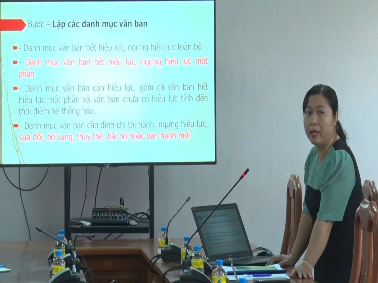 Tại lớp tập huấn, các học viên được nghe giới thiệu, phân tích và hướng dẫn áp dụng những quy định về kiểm tra, rà soát văn bản quy phạm pháp luật theo Luật Ban hành văn bản quy phạm pháp luật, Nghị định số 34/2016/NĐ-CP và Nghị định số 154/2020/NĐ-CP của Chính phủ. Trong đó, nhấn mạnh, làm rõ tầm quan trọng của công tác kiểm tra, rà soát văn bản quy phạm pháp luật và trách nhiệm của Ủy ban nhân dân các cấp trong công tác này; đồng thời tập trung một số nội dung quan trọng trong công tác kiểm tra, rà soát văn bản quy phạm pháp luật tại địa phương như: Nguyên tắc thực hiện; nhiệm vụ của các cơ quan, cá nhân có thẩm quyền; quy trình, kỹ năng, nghiệp vụ; các biểu mẫu áp dụng trong kiểm tra, rà soát, hệ thống hóa văn bản quy phạm pháp luật;… Qua đó nhằm nâng cao hiệu quả công tác ban hành văn bản quy phạm pháp luật trên địa bàn góp phần hoàn thiện hệ thống pháp luật và nâng cao hiệu quả tổ chức thi hành pháp luật, phục vụ phát triển kinh tế - xã hội của từng địa phương.