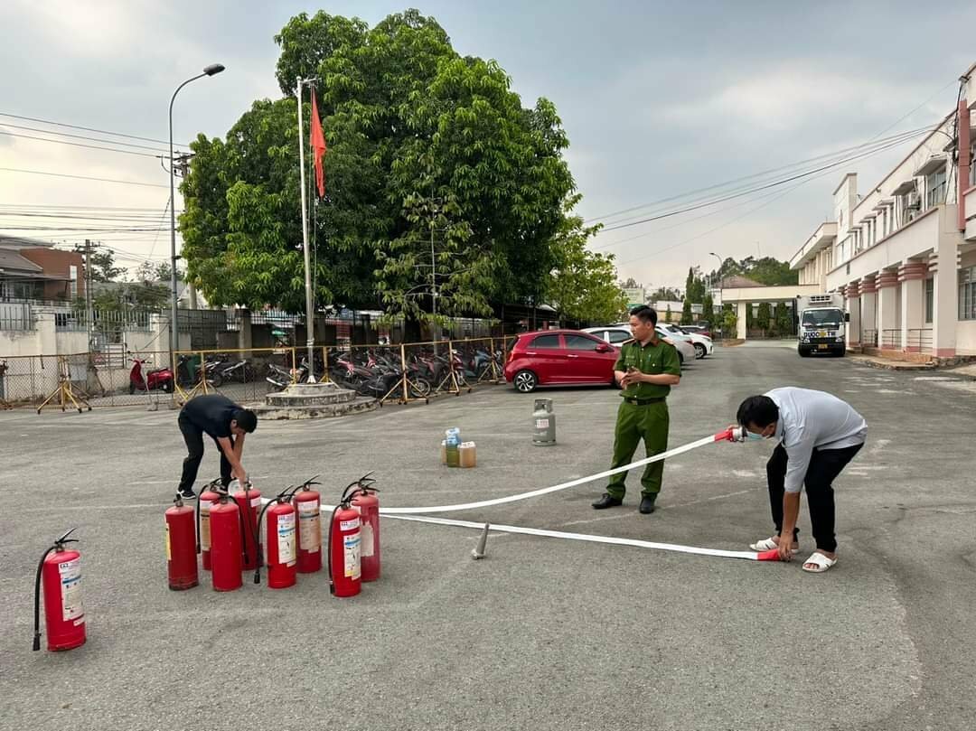 Tập huấn, huấn luyện phòng cháy chữa cháy tại Trung tâm Y tế thị xã Bến Cát