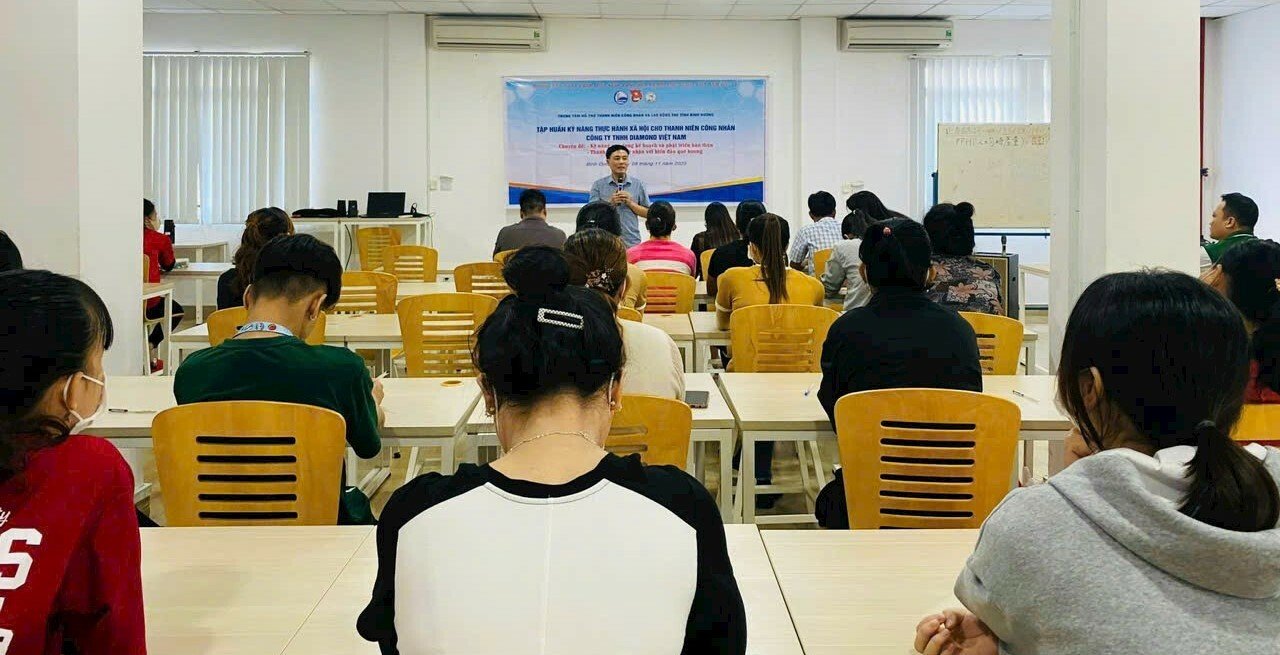Sáng ngày 08/11, Trung tâm Hỗ trợ thanh niên công nhân và lao động trẻ tỉnh, (Khu công nghiệp Mỹ Phước 3) tổ chức lớp tập huấn kỹ năng thực hành xã hội cho thanh niên công nhân tại Công ty TNHH Diamond Việt Nam.