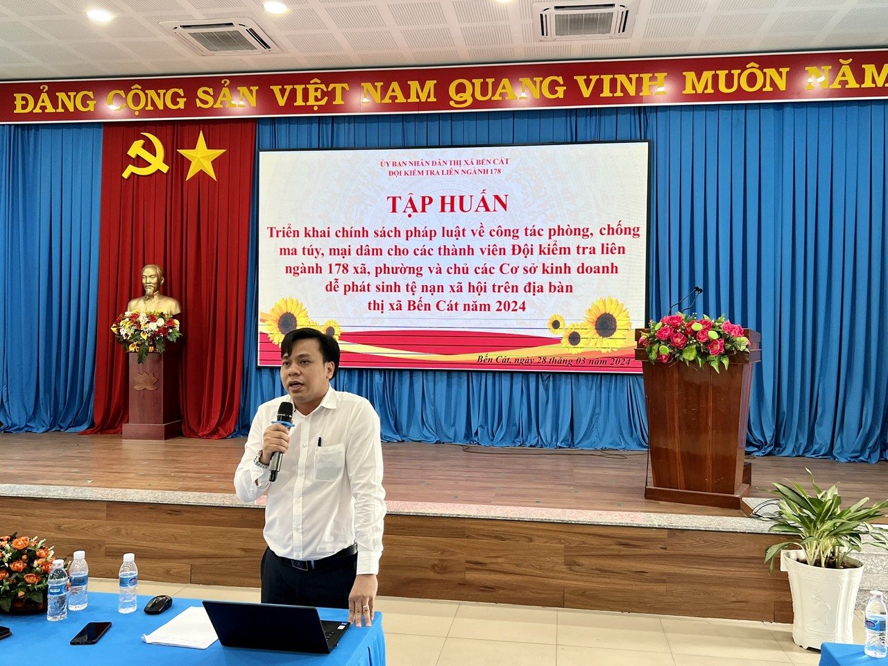 Tập huấn triển khai chính sách pháp luật về công tác phòng, chống ma túy, mại dâm cho các cơ sở kinh doanh dễ phát sinh tệ nạn mại dâm trên địa bàn thị xã Bến Cát năm 2024