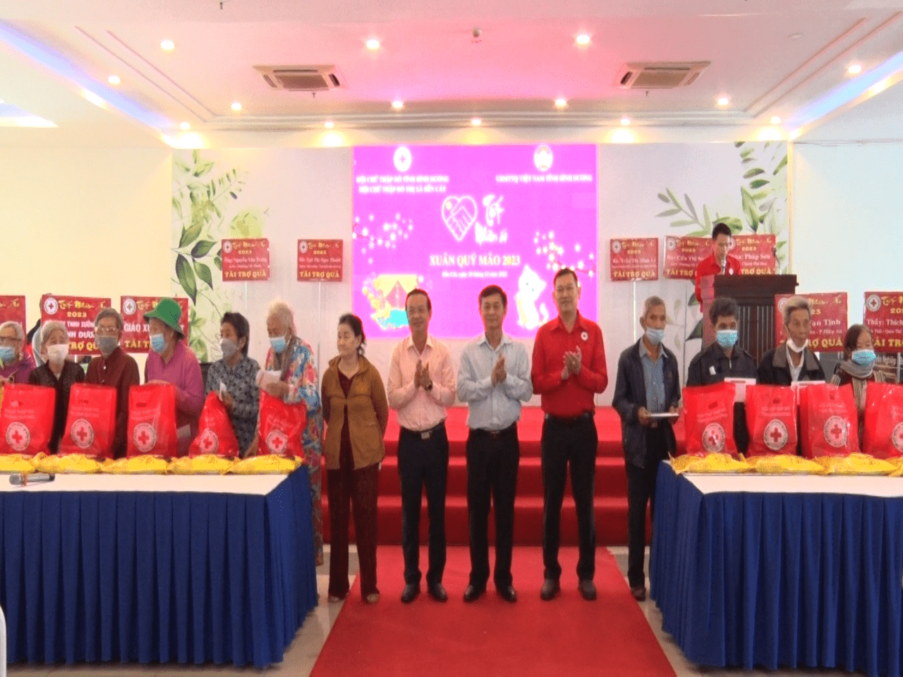 Dịp này, Hội Chữ thập đỏ tỉnh, thị xã, các mạnh thường quân, nhà hảo tâm đã trao tặng tiền và quà Tết cho 307 người gồm 200 hộ nghèo, 20 trẻ mồ côi, 87 người mù và bị ảnh hưởng chất độc da cam. Tổng giá trị của chương trình trên 662 triệu đồng. Đồng thời, lãnh đạo tỉnh, thị xã đã đến tận nhà 2 em Trịnh Thị Mỹ Như và Trịnh Trung Hậu ngụ xã An Tây, có hoàn cảnh khó khăn, mẹ mất do Covid, phải sống với bà ngoại để trao tặng 12 triệu đồng tiền mặt và quà tết.