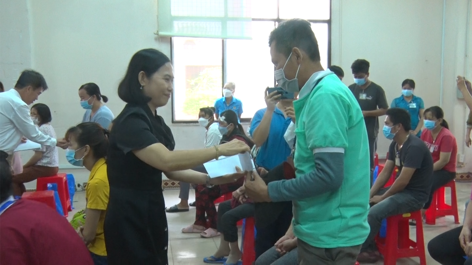 Theo đó, Đoàn đã trao tặng 100 phần quà cho công nhân lao động Công ty TNHH Right Rich Việt Nam và Công ty TNHH cao su Phong Thái tại phường Tân Định, mỗi phần quà trị giá 500.000 đồng gồm quà và 200.000 đồng tiền mặt.