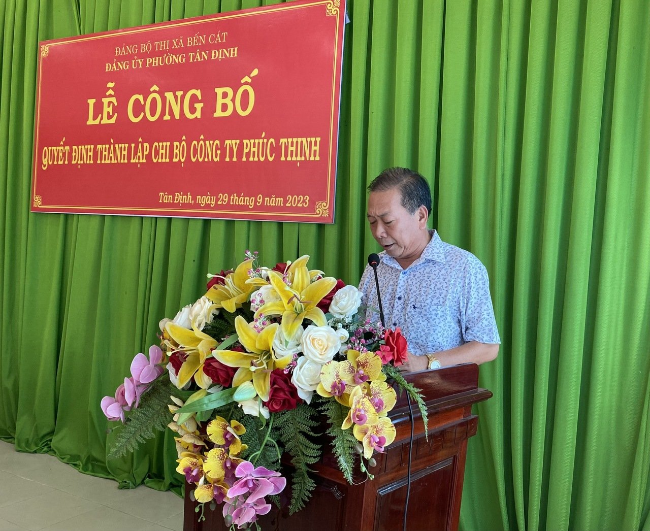 Đảng ủy phường Tân Định vừa tổ chức công bố và trao Quyết định thành lập chi bộ Công ty Phúc Thịnh. Đến dự có đồng chí Nguyễn Thị Yến Loan – Trưởng ban Tổ chức Thị ủy, đồng chí Bùi Văn Chiến – Bí thư Đảng ủy phường.