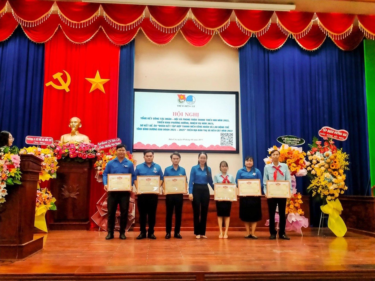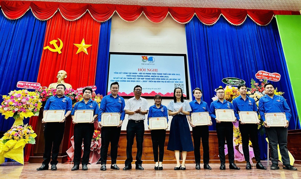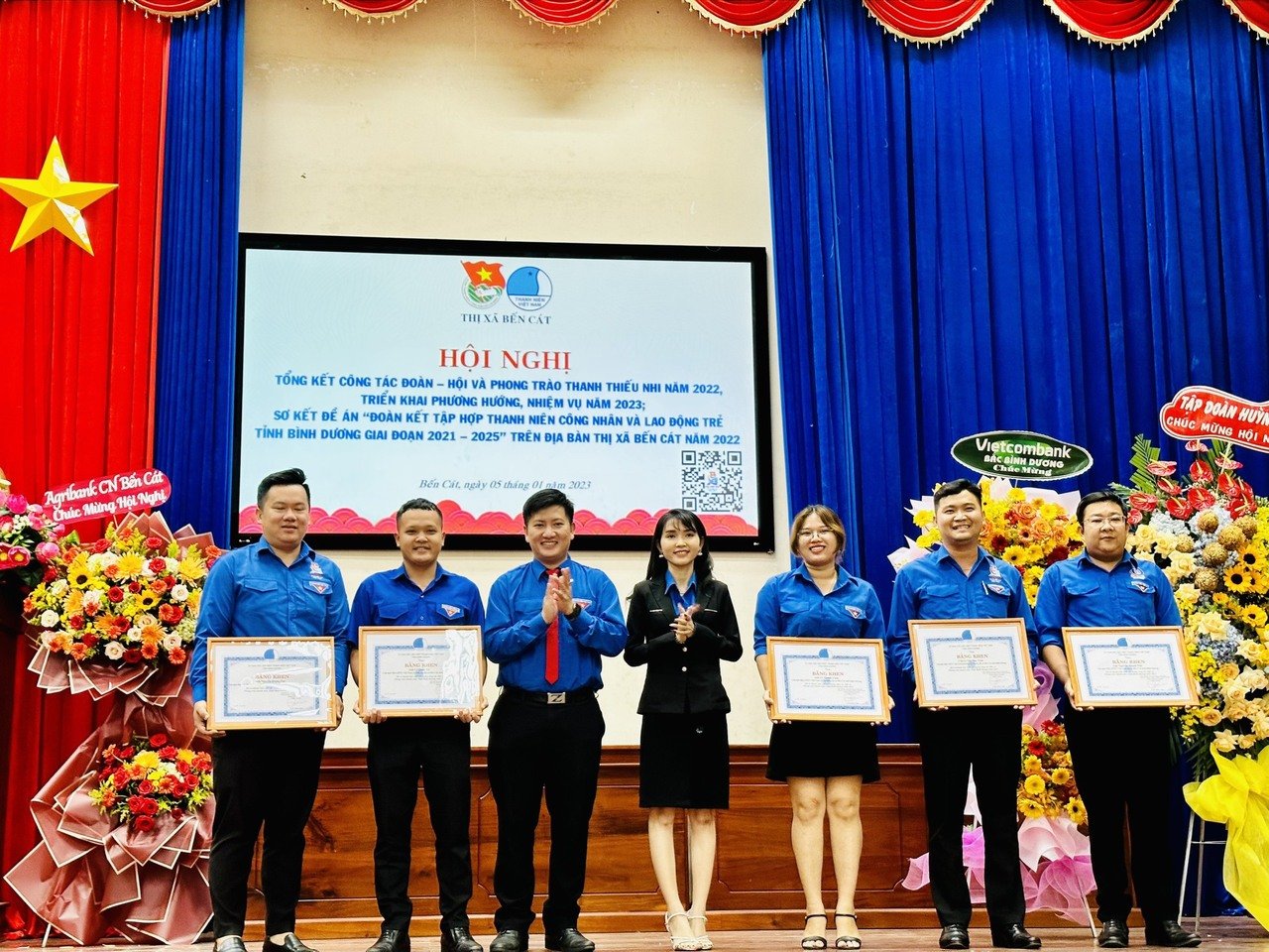 Dịp này, Ban thường vụ Thị đoàn Bến Cát trao tặng bằng khen, giấy khen của Trung ương Đoàn TNCS Hồ Chí Minh, Tỉnh đoàn và Thị đoàn cho các tập thể và cá nhân đạt thành tích xuất sắc trong công tác Đoàn, Hội và phong trào thanh thiếu nhi năm 2022.