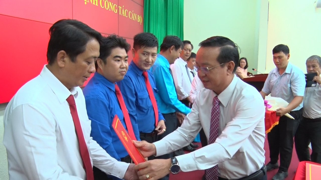 Theo đó, lãnh đạo Thị ủy trao Quyết định chuẩn y của Liên đoàn Lao động tỉnh đối với đồng chí Lê Nguyễn Thanh Bình – Chủ tịch LĐLĐ thị xã, đồng chí Nguyễn Thị Ngọc Bích – Phó Chủ tịch LĐLĐ thị xã nhiệm kỳ 2023-2028; trao Quyết định của Tỉnh đoàn công nhận đồng chí Nguyễn Thanh Phú – Bí thư Thị đoàn, đồng chí Võ Thành Dương – Phó Bí thư Thị đoàn (kiêm nhiệm), nhiệm kỳ 2022-2027. Thị ủy trao Quyết định bổ nhiệm, điều động, luân chuyển đối với đồng chí Trần Thanh Liêm – Phó Bí thư Đảng ủy, Chủ tịch UBND xã An Điền giữ chức vụ Phó Bí thư Đảng ủy phường Thới Hòa; đồng chí Phan Thanh Thảo – Phó Bí thư Đảng ủy, Chủ tịch UBND phường Thới Hòa, giữ chức vụ Phó Bí thư Đảng ủy xã An Điền nhiệm kỳ 2020-2025. Trao Quyết định chuẩn y bầu cử chức danh Phó Chủ tịch UBND phường Chánh Phú Hòa đối với đồng chí Nguyễn Hùng Minh; Quyết định chuẩn y kết quả bầu cử chức danh Phó Chủ tịch HĐND phường đối với đồng chí Nguyễn Kim Loan – Công chức Văn hóa - Xã hội phường Chánh Phú Hòa. Bên cạnh đó, Thị ủy còn trao Quyết định nghỉ việc theo nguyện vọng cá nhân của đồng chí Ung Thị Thùy Linh – Nguyên Phó Chủ tịch UBND phường Chánh Phú Hòa, nhiệm kỳ 2021-2026.