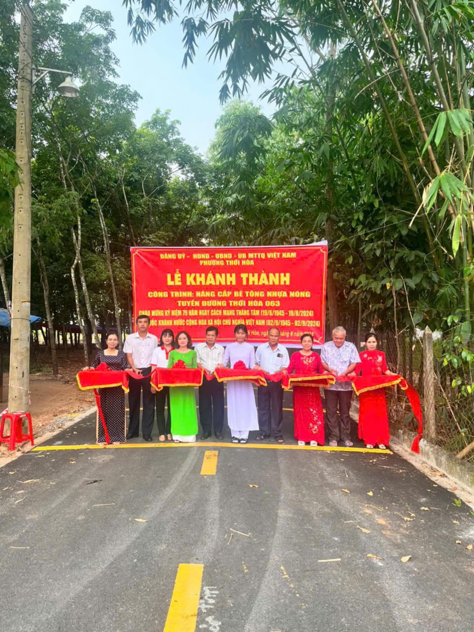 Thực hiện Đề án 02-ĐA/TU về công tác dân vận tham gia xây dựng nếp sống văn hóa – văn minh, ngày 22/8, Đảng ủy, HĐND, UBND, Ủy ban MTTQ Việt Nam phường Thới Hòa tổ chức khánh thành và đưa vào sử dụng công trình đường giao thông Thới Hòa 63 thuộc khu phố 2, phường Thới Hòa. Đây là công trình chào mừng kỷ niệm 79 năm ngày Cách mạng Tháng tám (19/8/1945-19/8/2024) và Quốc khánh Nước Cộng hòa xã hội chủ nghĩa Việt Nam (02/9/1945-02/9/2024).