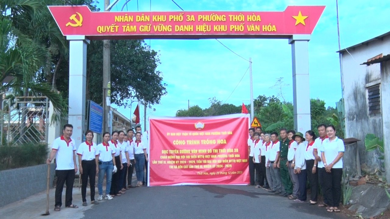 Dịp này, Ủy ban MTTQ Việt Nam phường Thới Hòa và các tổ chức đoàn thể đã tổ chức trồng hoa dọc tuyến đường và vận động người dân cùng chung tay thực hiện và chăm sóc hoa.