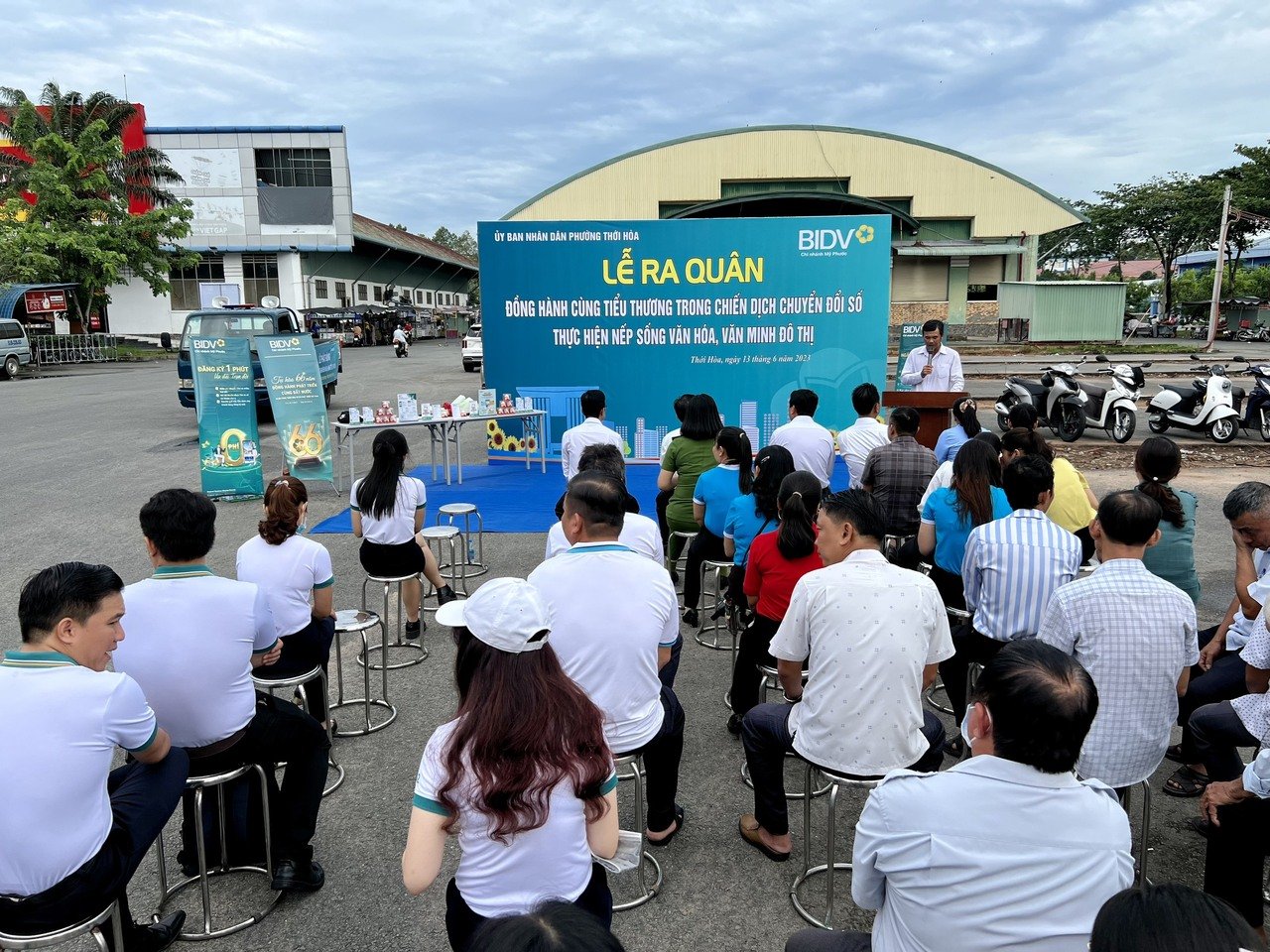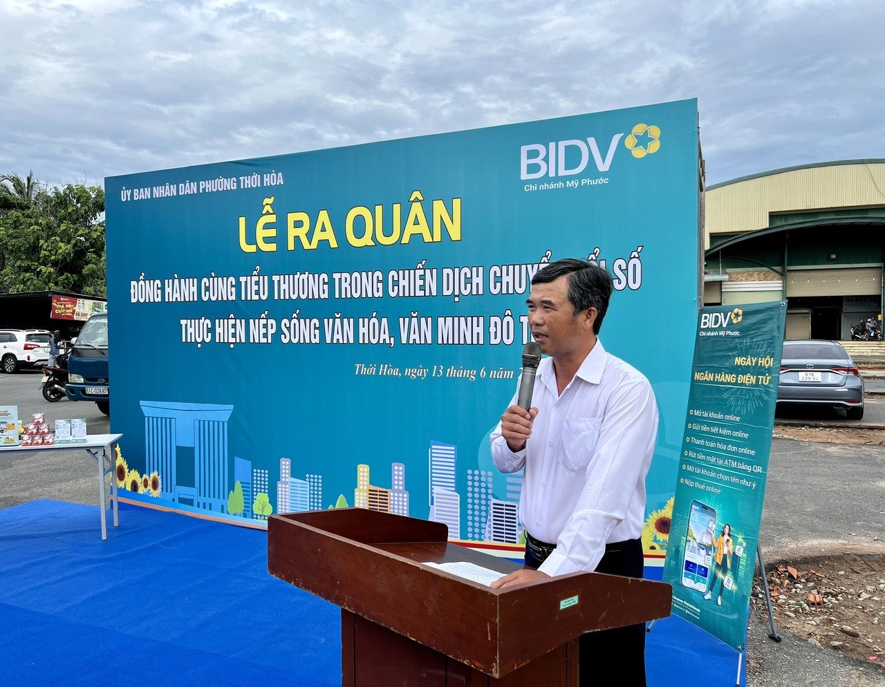 Tại buổi lễ ra quân, ông Nguyễn Chí Lâm – Phó Chủ tịch UBND phường đã kêu gọi người dân trên địa bàn phường Thới Hòa thực hiện thanh toán không dùng tiền mặt, đồng thời phối hợp với Ngân hàng BIDV - Chi nhánh Mỹ Phước và các đoàn thể tổ chức tuyên truyền, vận động các hộ kinh doanh trên các tuyến đường khu phố 6 và khu phố 3B của phường thực hiện thanh toán không dùng tiền mặt; hướng dẫn cài đặt ứng dụng hỗ trợ thanh toán không dùng tiền mặt cho từng hộ kinh doanh, từng bước tạo sự thay đổi về thói quen thanh toán điện tử thay thế hình thức sử dụng tiền mặt.