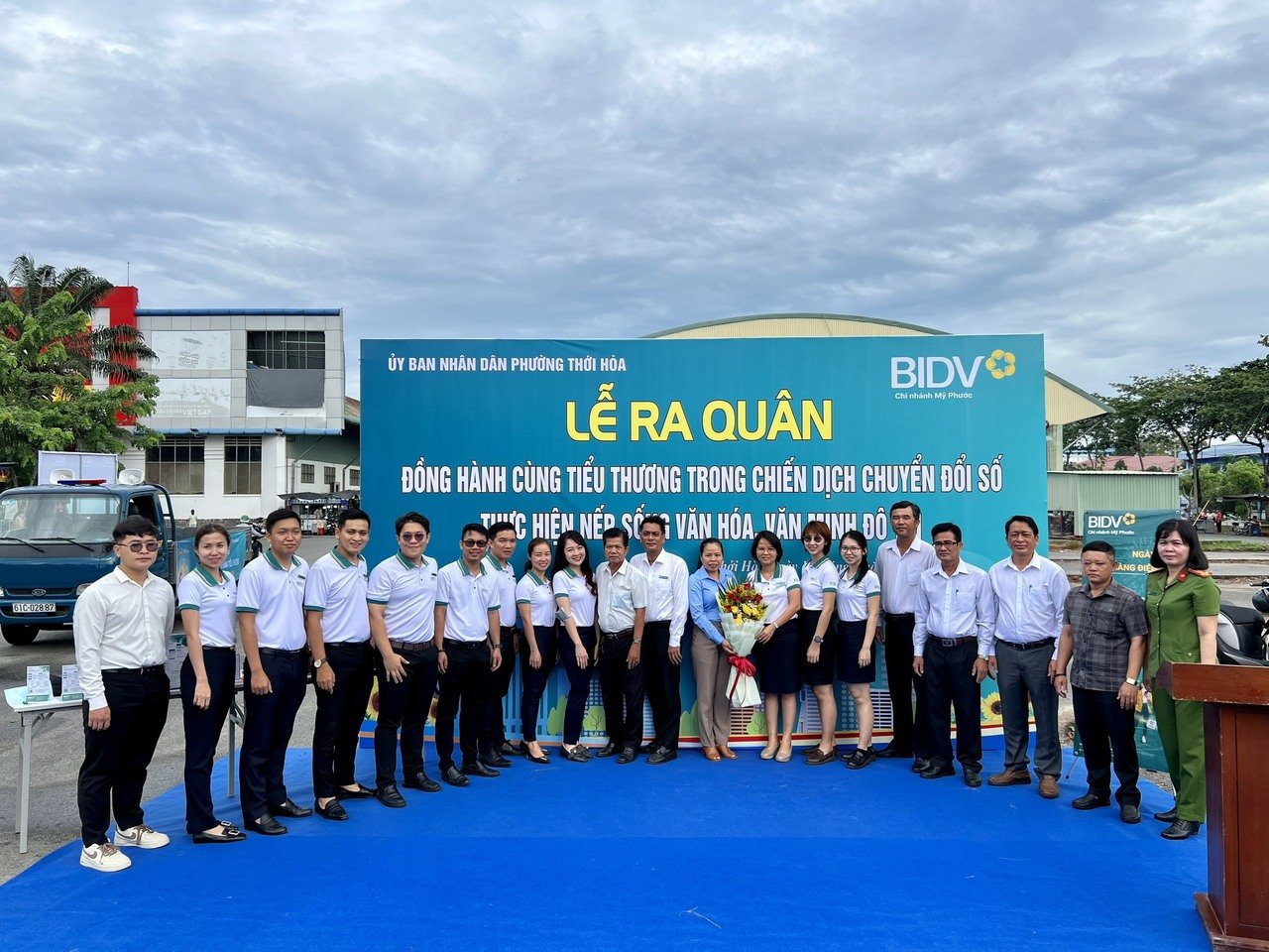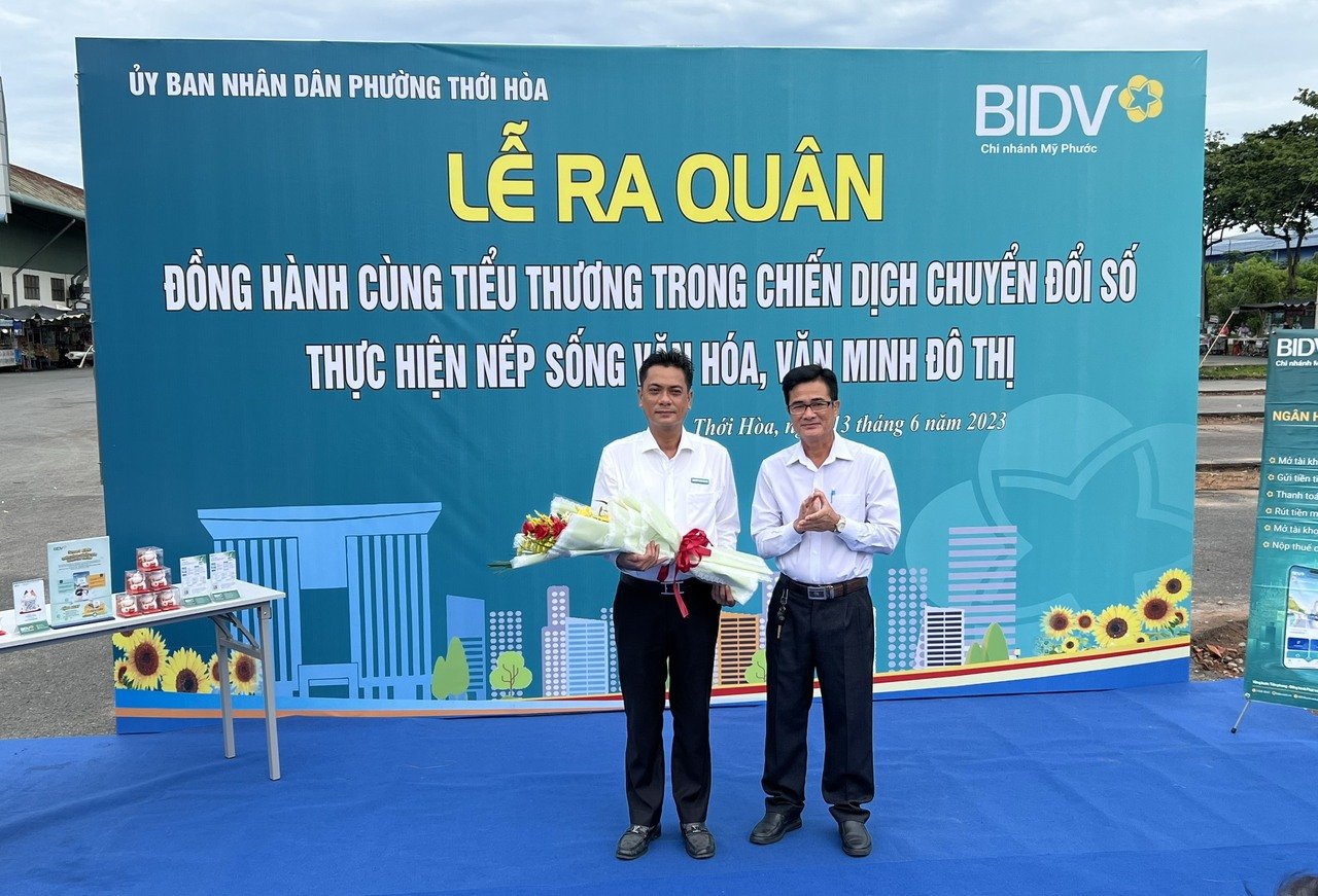 Dịp này, Ngân hàng BIDV - Chi nhánh Mỹ Phước đã trao tặng số tiền 05 triệu đồng vào quỹ hỗ trợ công tác chuyển đổi số của UBND phường Thới Hòa