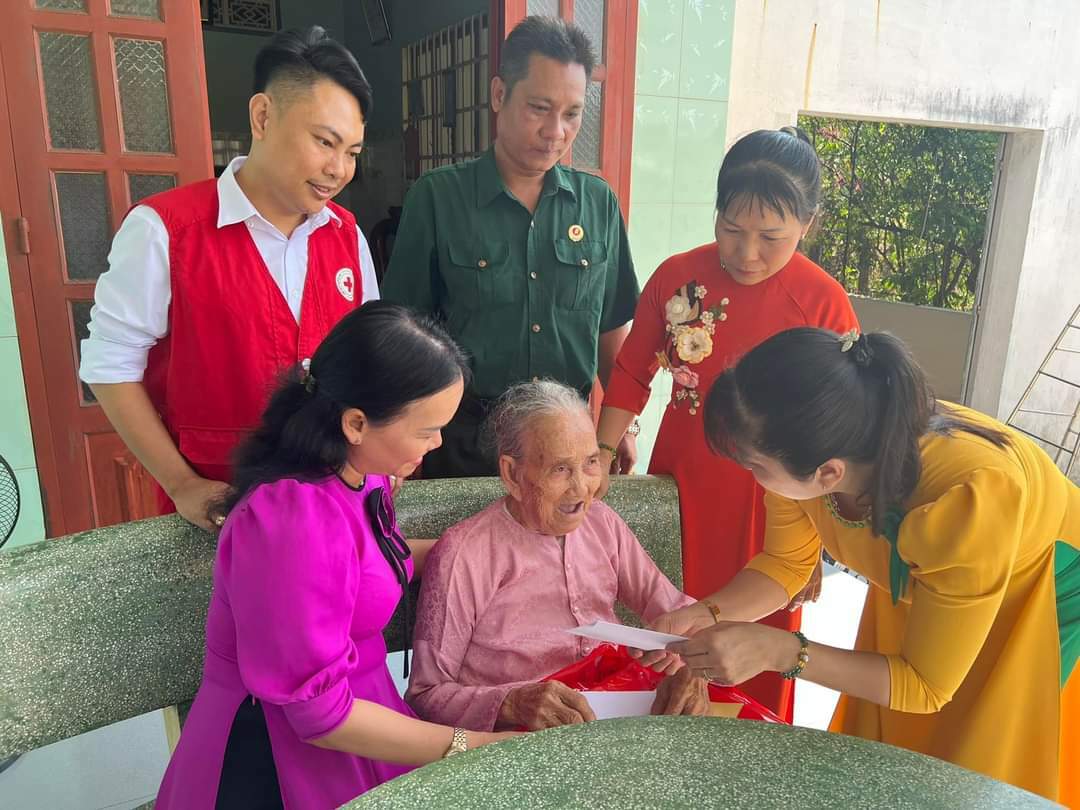 Theo đó, đoàn đã đến thăm và tặng quà mẹ Việt Nam anh hùng Nguyễn Thị Muôn (khu phố 6) và mẹ Cao Thị Trưa (khu phố 1).