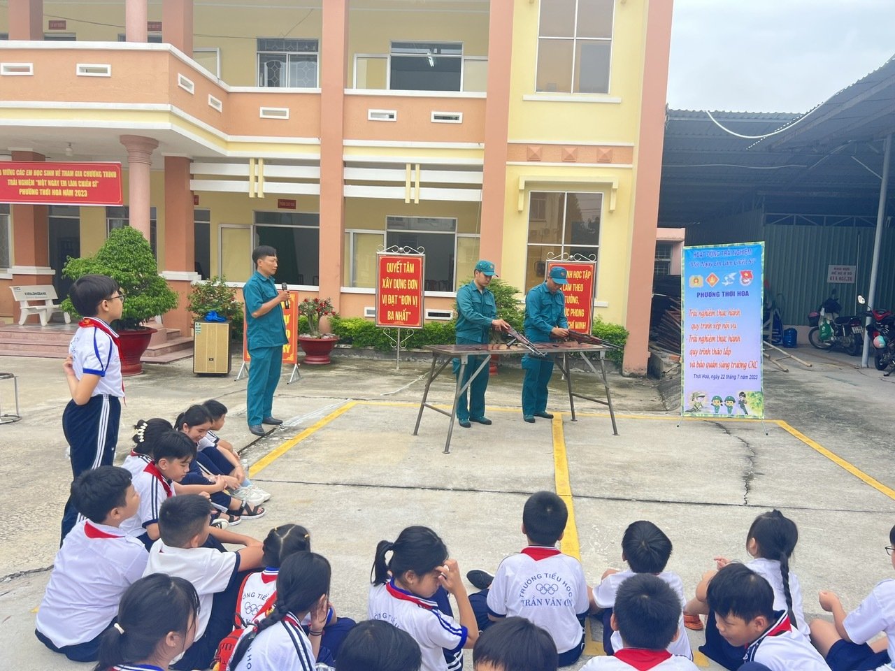 Ngày 23/07, Công an phường Thới Hòa, Ban CHQS, Đoàn thanh niên, Hội LHPN phường cùng phối hợp tổ chức chương trình hoạt động trải nghiệm Một ngày làm chiến sĩ cho học sinh các trường trên địa bàn phường.