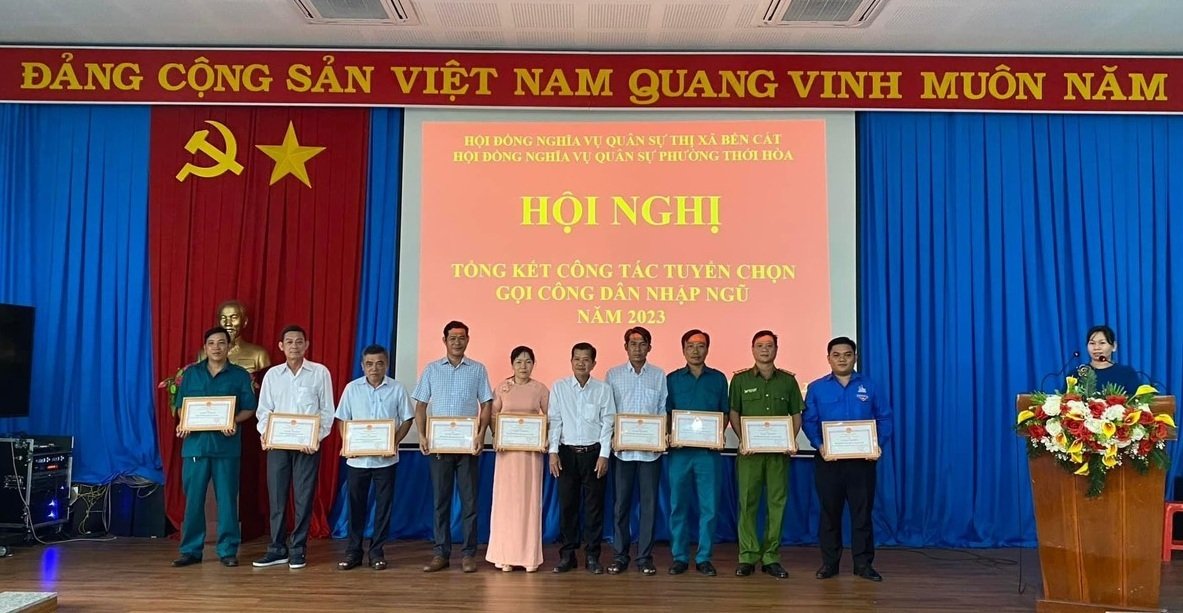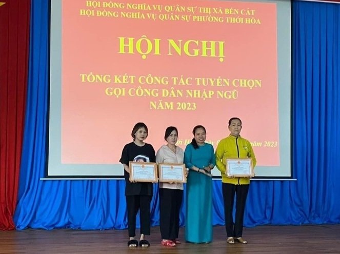 Dịp này, UBND phường đã trao khen thưởng cho 9 tập thể, 23 cá nhân và 3 gia đình tiêu biểu có thành tích xuất sắc trong công tác tuyển chọn gọi công dân nhập ngũ phường Thới Hòa năm 2023.