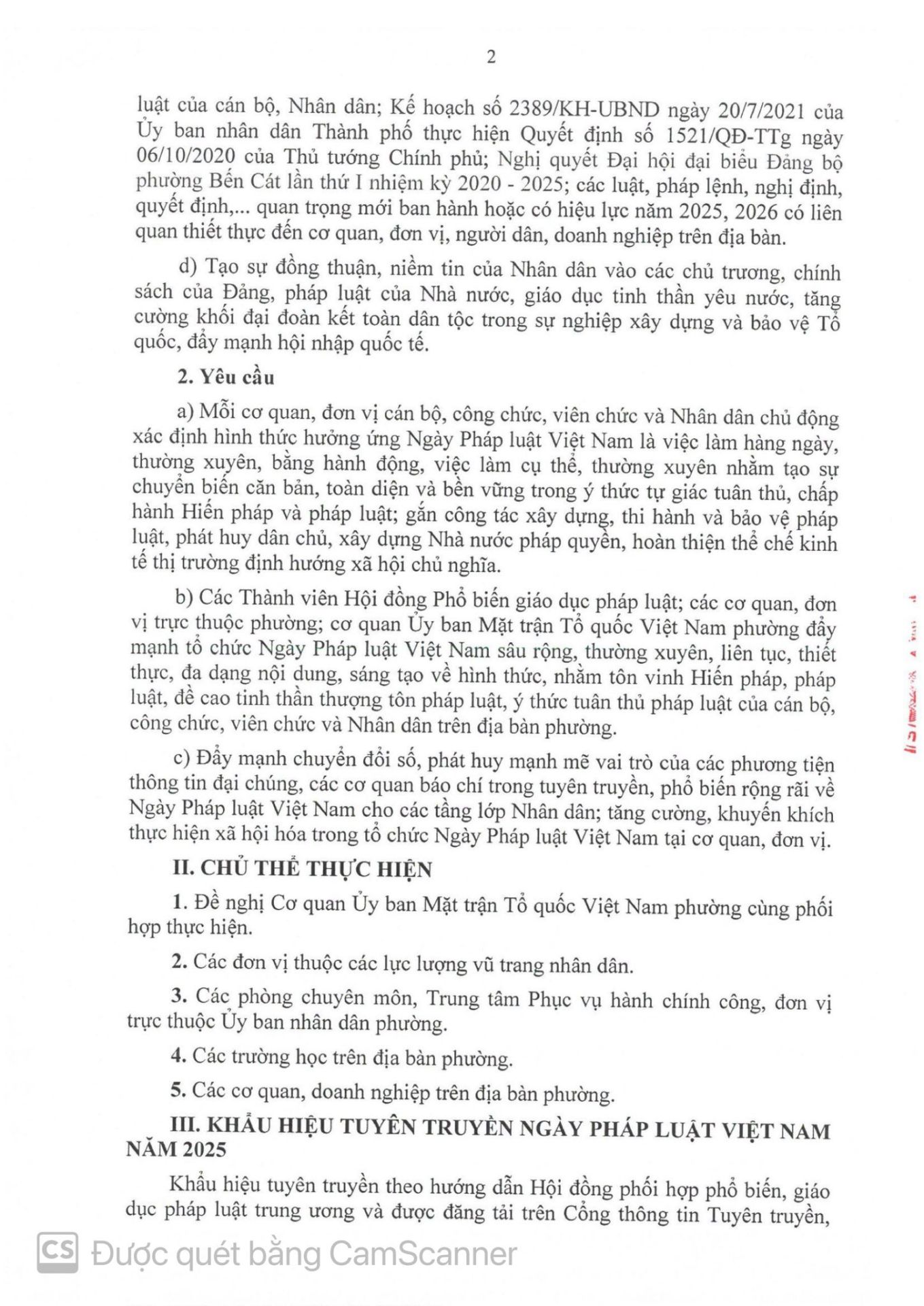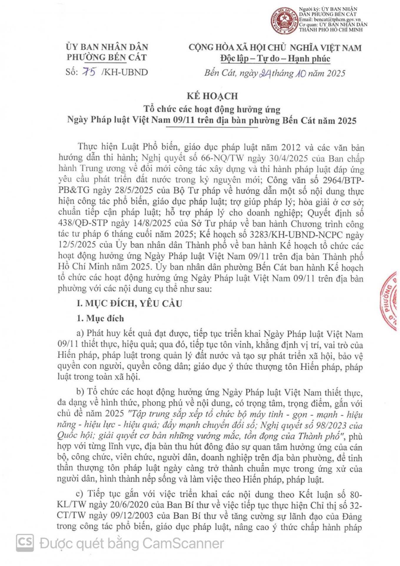 Tổ chức các hoạt động hưởng ứng Ngày Pháp luật Việt Nam 09/11 trên địa bàn phường Bến Cát năm 2025